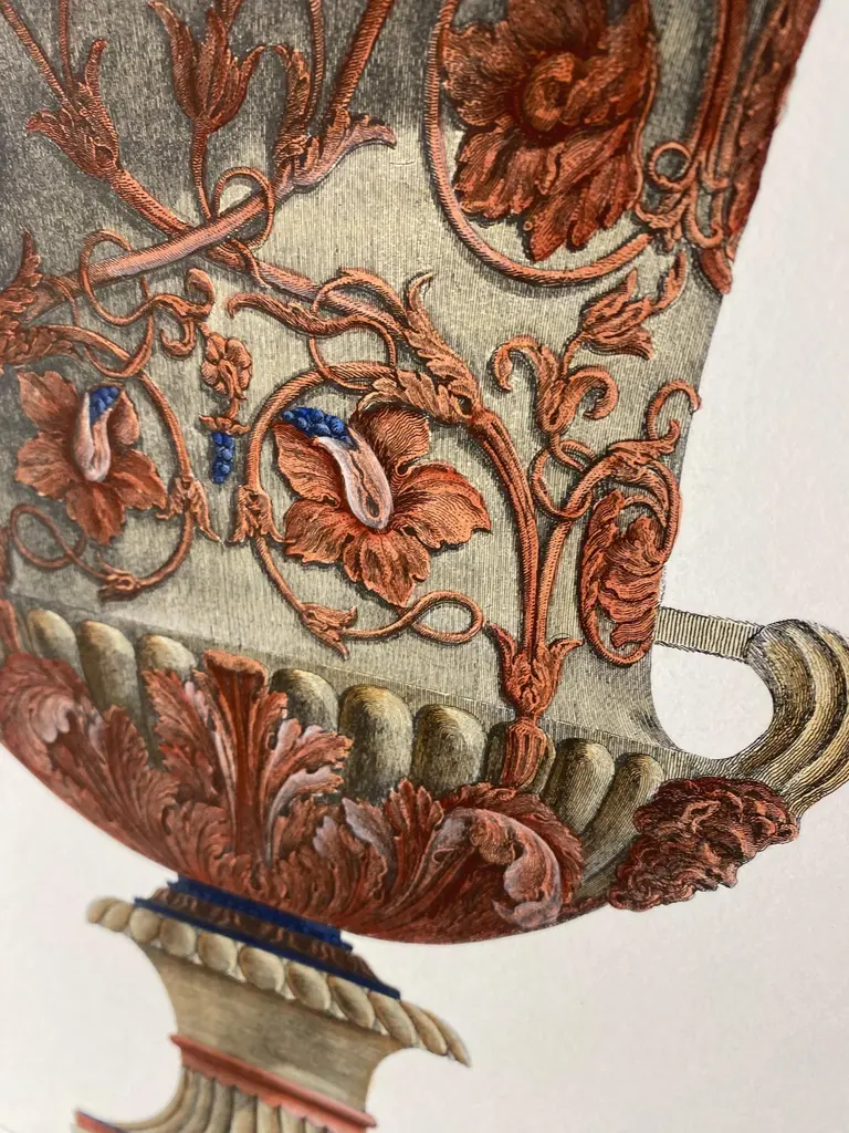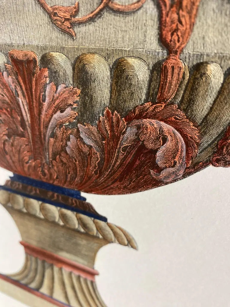 Italian Contemporary Hand Coloured Red Blue Roman Vase Print G.b Piranesi 2 Of 2