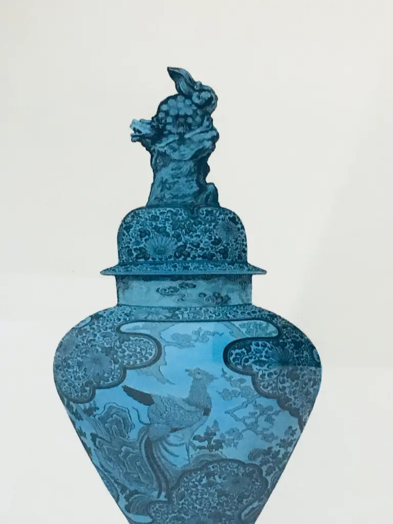 Italian Contemporary Hand Painted Blue China Vase Print With Black Frame 1 Of 3