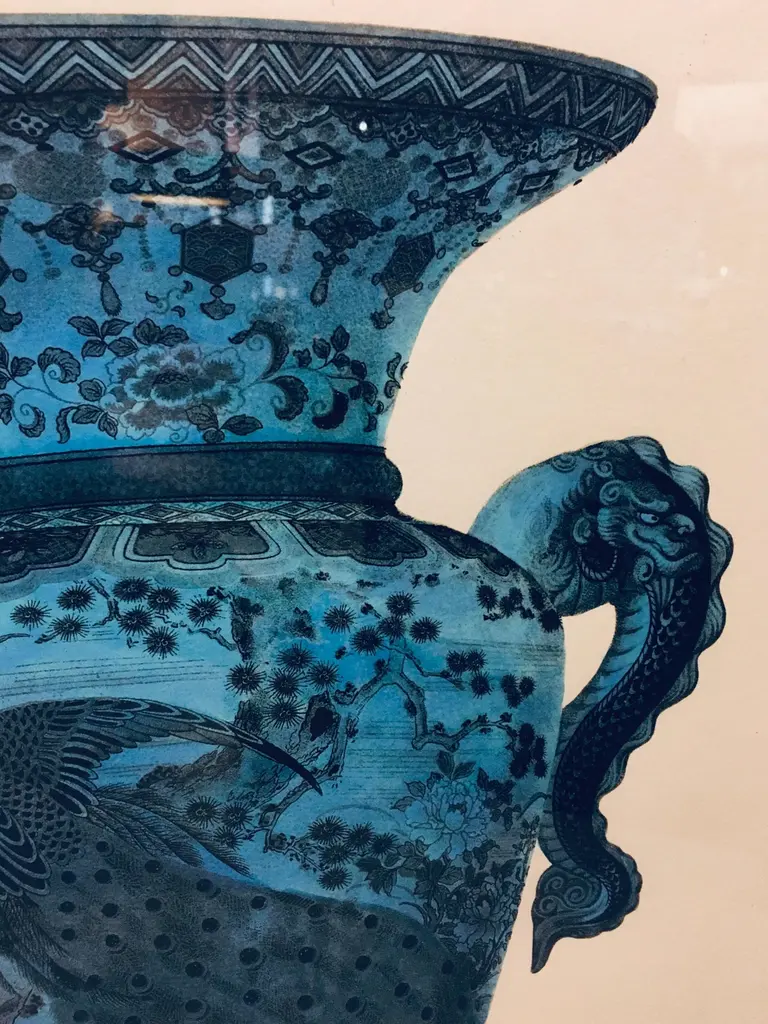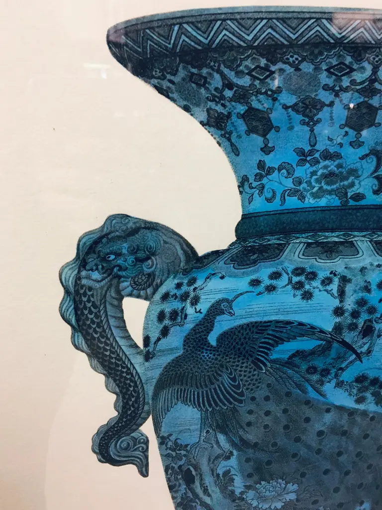 Italian Contemporary Hand Painted Blue China Vase Print With Black Frame 3 Of 3