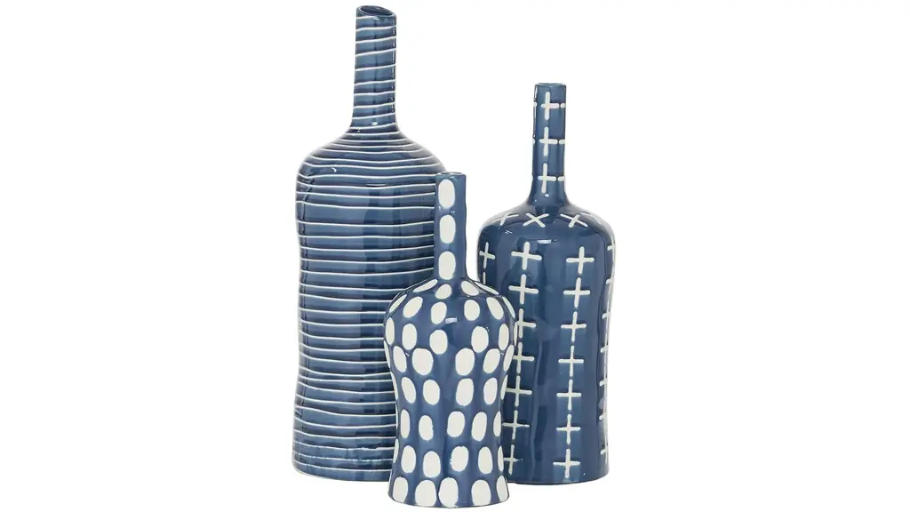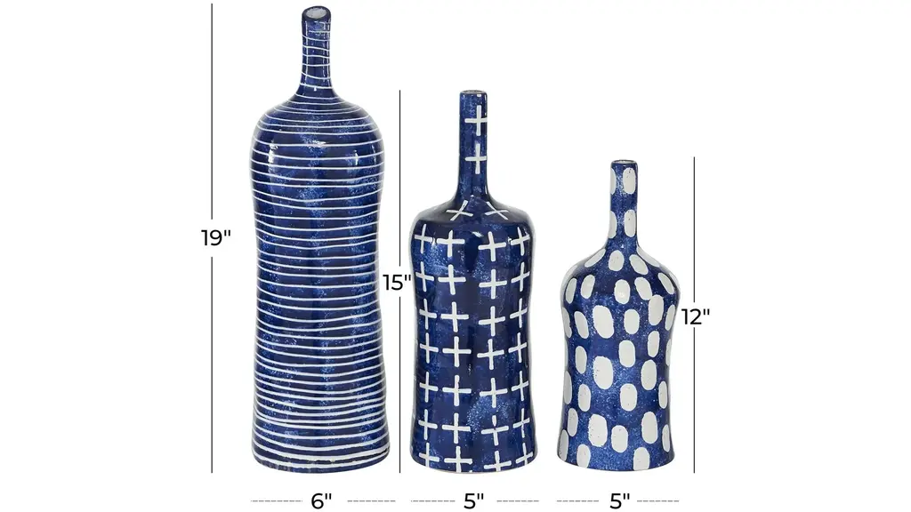 Ivy Collection Blue Ceramic Contemporary Vase Set Of 3