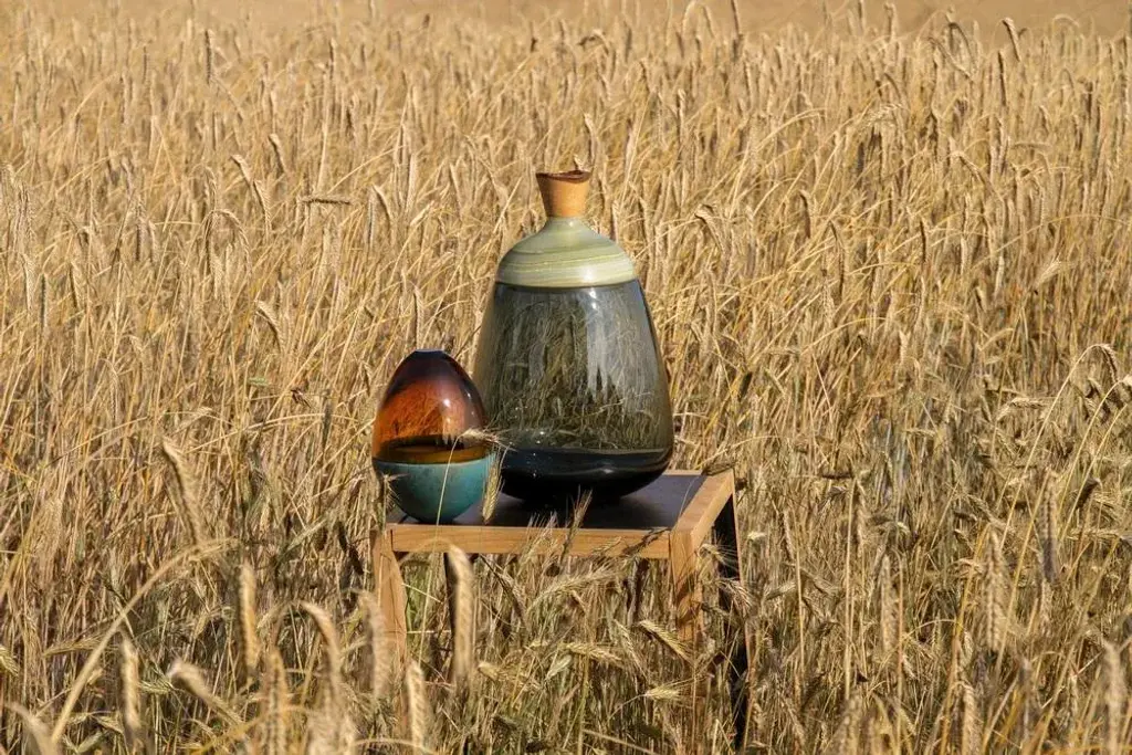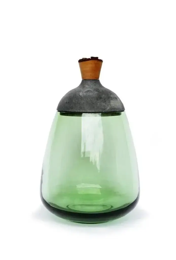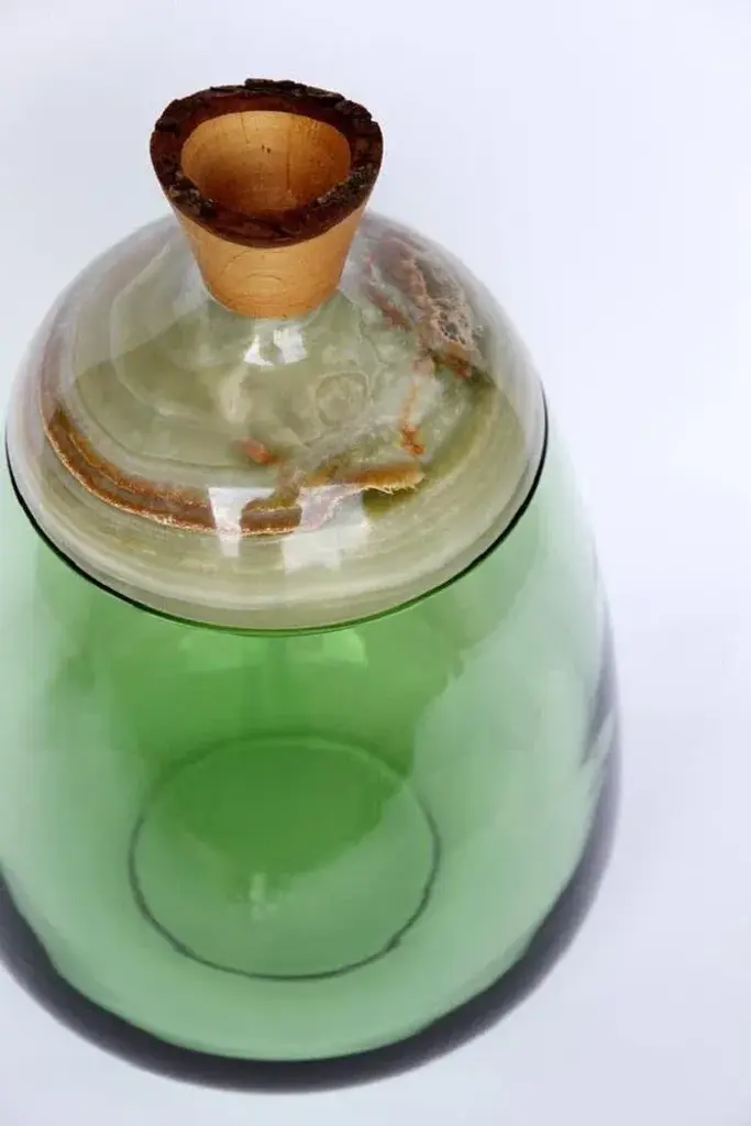Jade and Onyx Terra stacking vessel, Pia Wüstenberg Dimensions: D 23 x H 37 Materials: glass, wood, onyx Available in other colors, marble version and soapstone version. Dense in its tones and materials, and in the same time refined in its composition, Terra is an ode to the tactile and tangible earth. Bringing together the fragile lightness of glass and the ancient prestige of stone, our new Terra continues the pursuit of European sustainable luxury. Handmade in Europe: handblown glass (Czech Republic), marble/onyx (Italy), hand turned wood (Finland). The materials then come to our warehouse in North Germany where they are fitted and assembled. This piece is attributed to the mentioned designer/maker. It has no attribution mark and no official proof of authenticity, however it is well documented in design history. I take full responsibility for any authenticity issues arising from misattribution