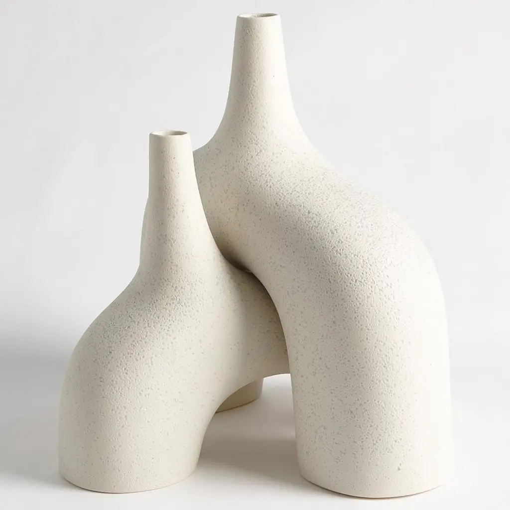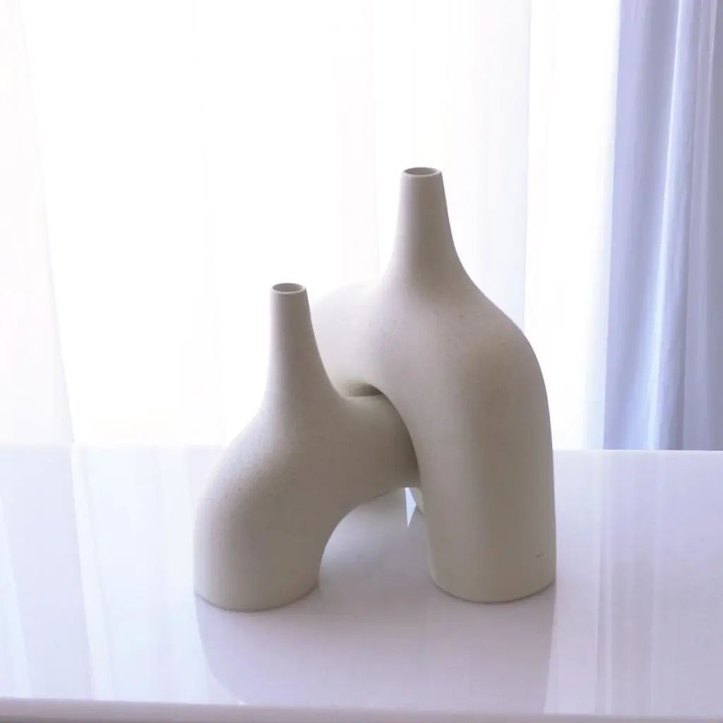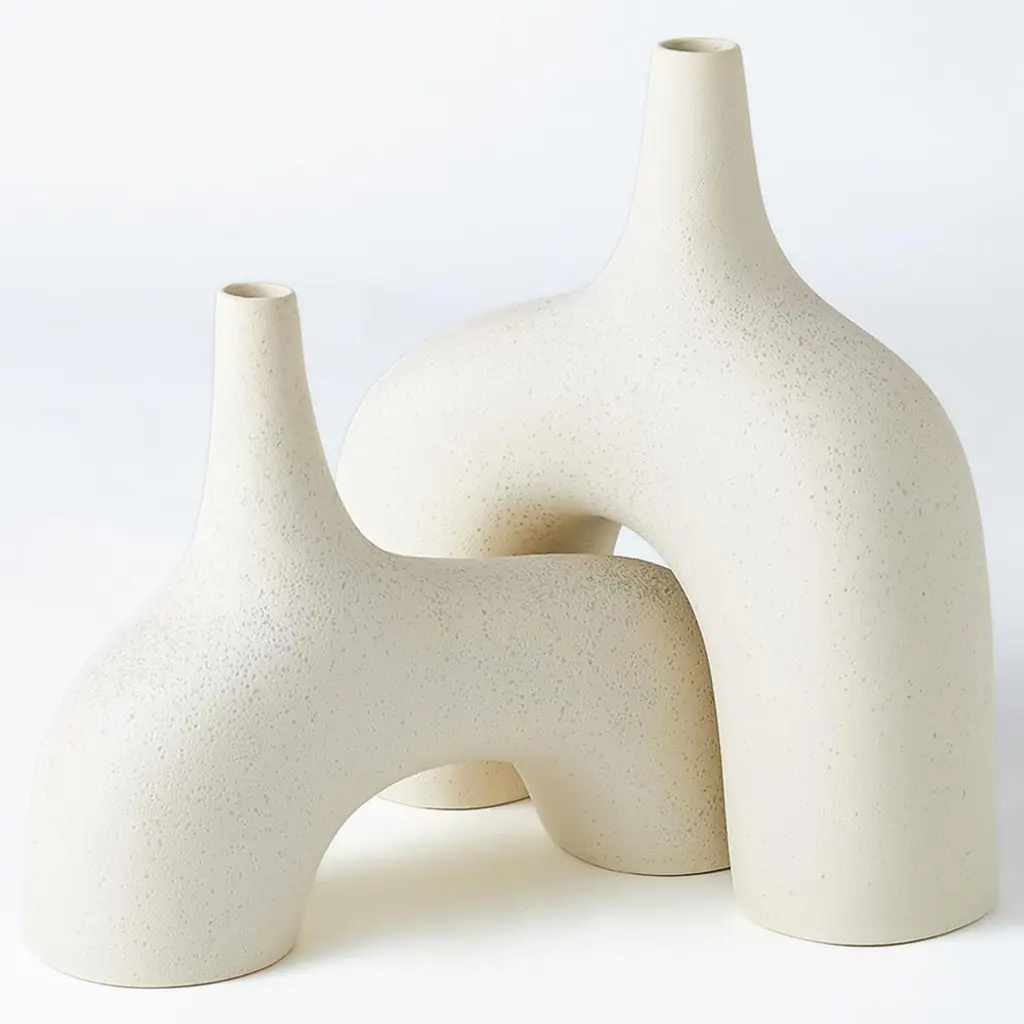 Jadus Modern Cream Ceramic Decorative Table Vase - Small