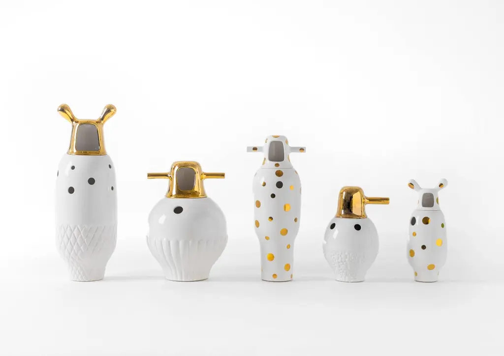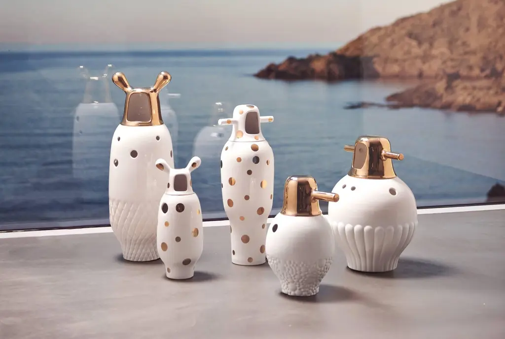 Contemporary showtime 10 vase number 3 by Jaime Hayon.Manufactured by BD Barcelona (Spain).Made up of two pieces in glazed stoneware, with a white finish and 24-carat gold-plated decorations.Measures: Height 42 cm x diameter 27 cm.