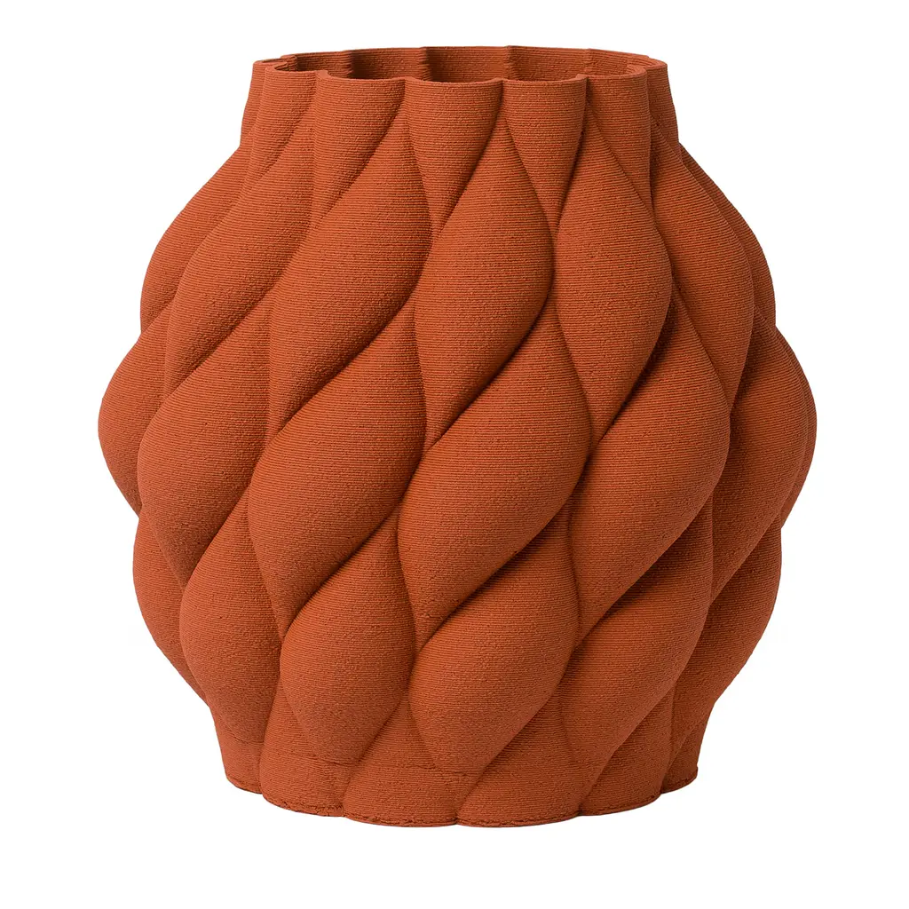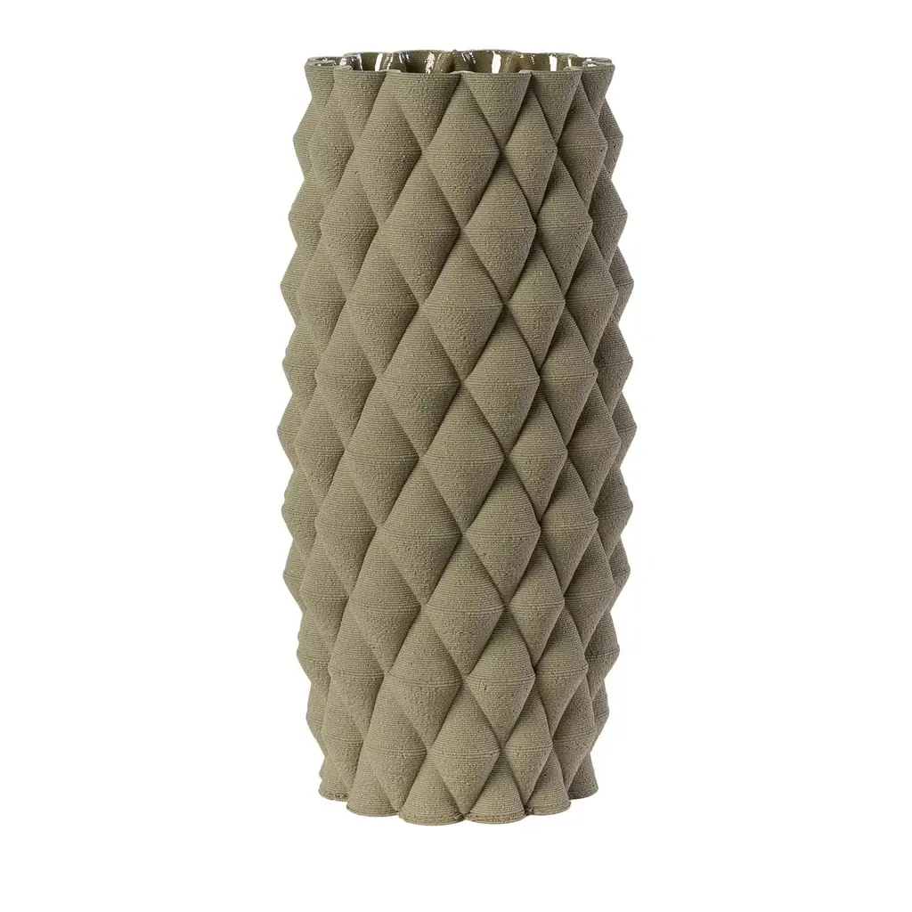 The Jaipur Mini Vase from the Mitti Vases collection combines traditional craftsmanship and advanced 3D printing to create a distinctive surface reminiscent of sand dunes. The exterior features an unfinished texture that plays with light and shadow, while the interior is transparently glazed for water resistance. Each piece is unique with slight variations expected in texture and form, making it a sculptural accent for contemporary interiors.