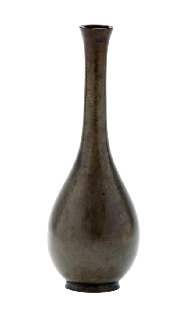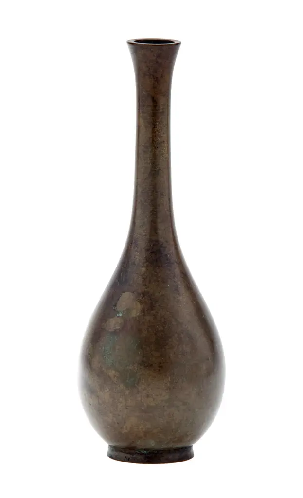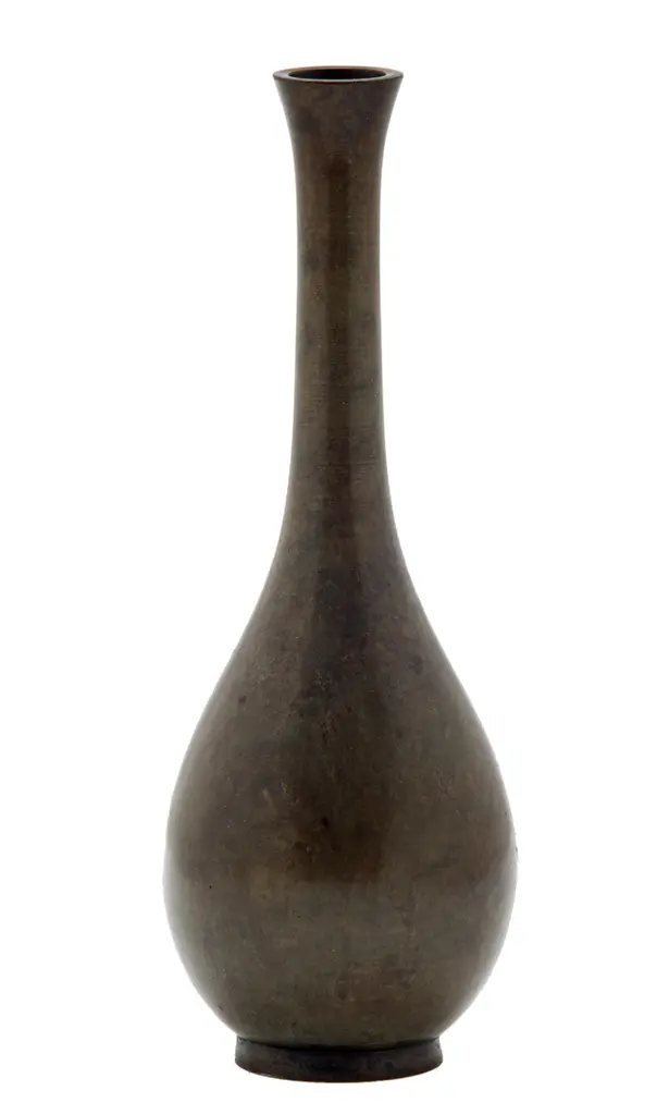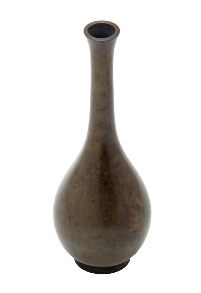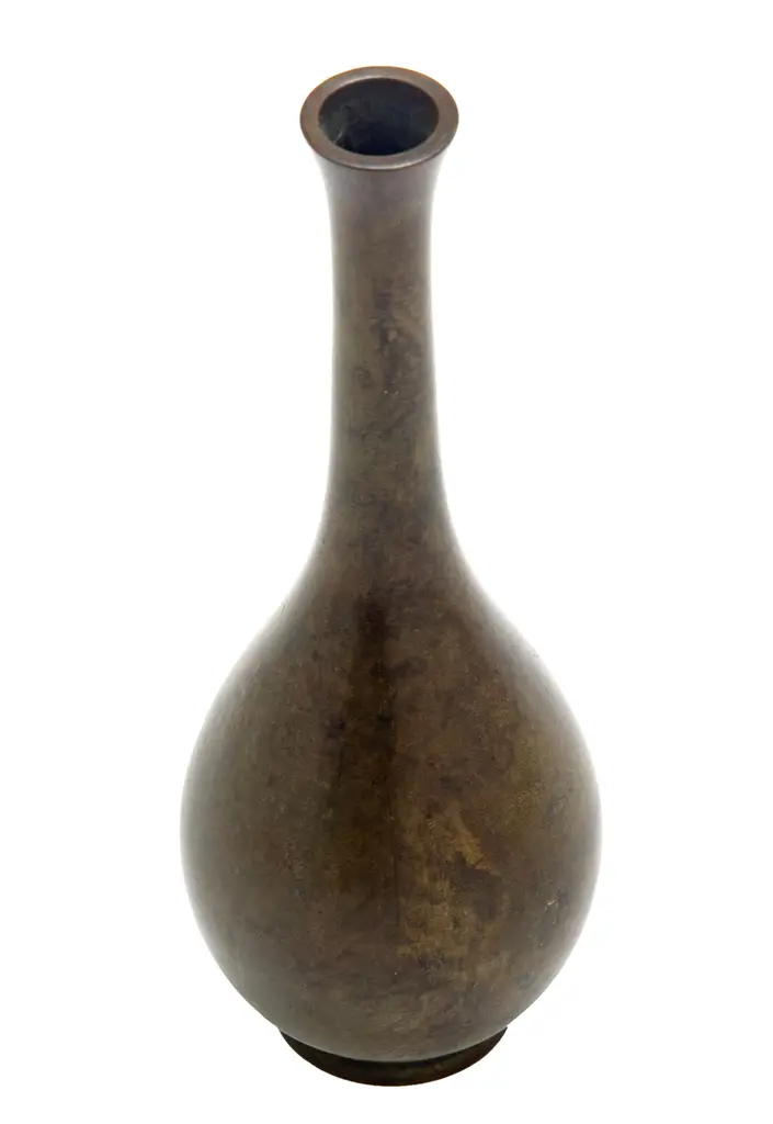 Mid-century mottled bronze Japanese bud vase with a silky-smooth finish. This stunning Japanese bud vase with a classic teardrop form in excellent condition with no damage.
