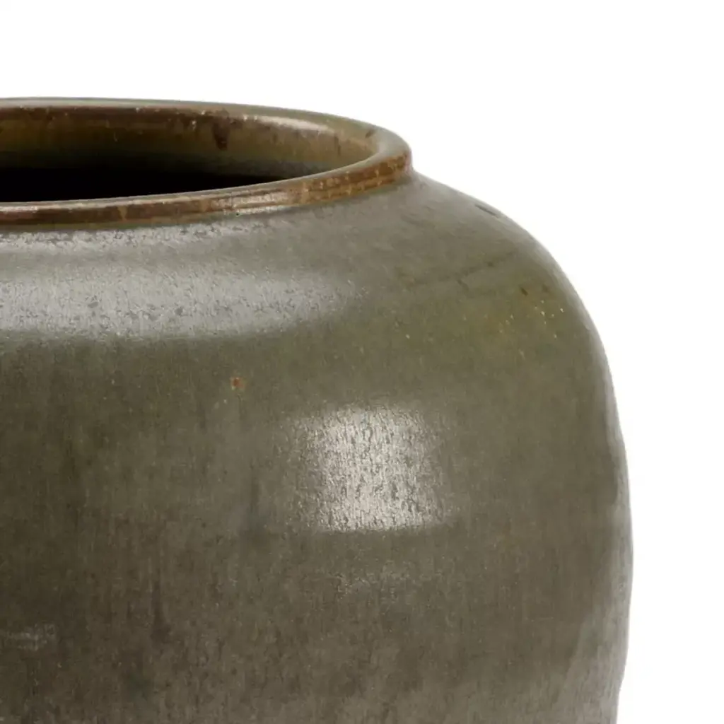 Hand Finished,wide-Mouth Ceramic Vase In Mottled Green Finish. For Decorative Use Only. Color May Vary.