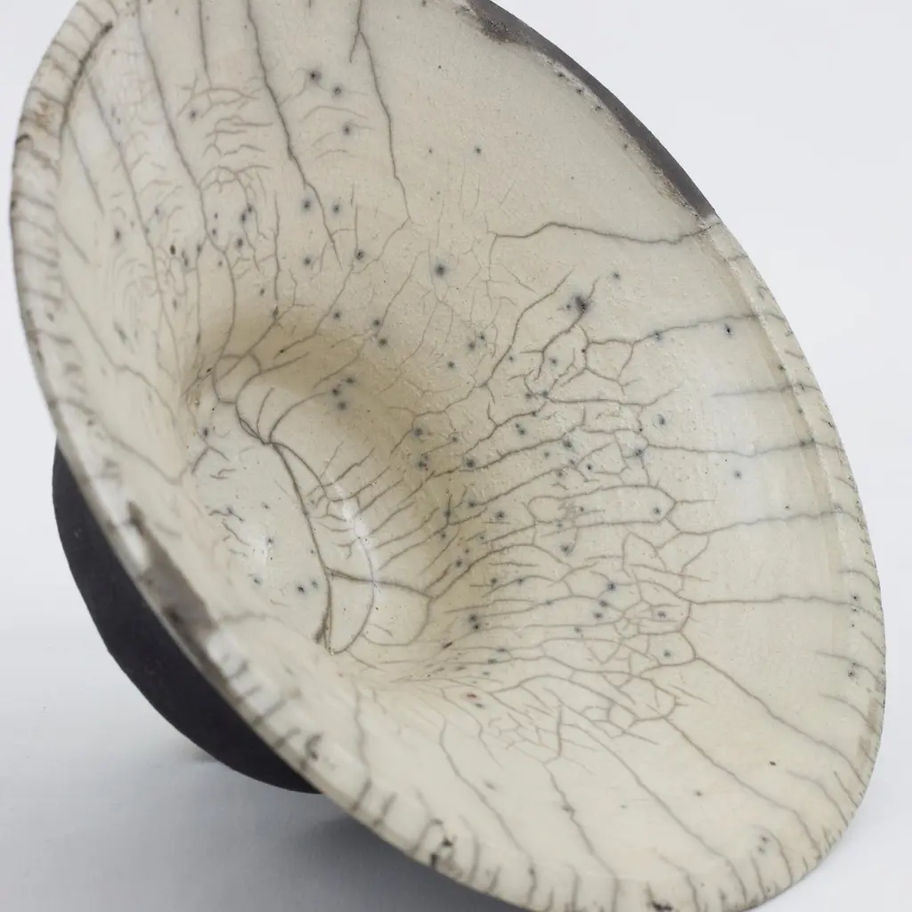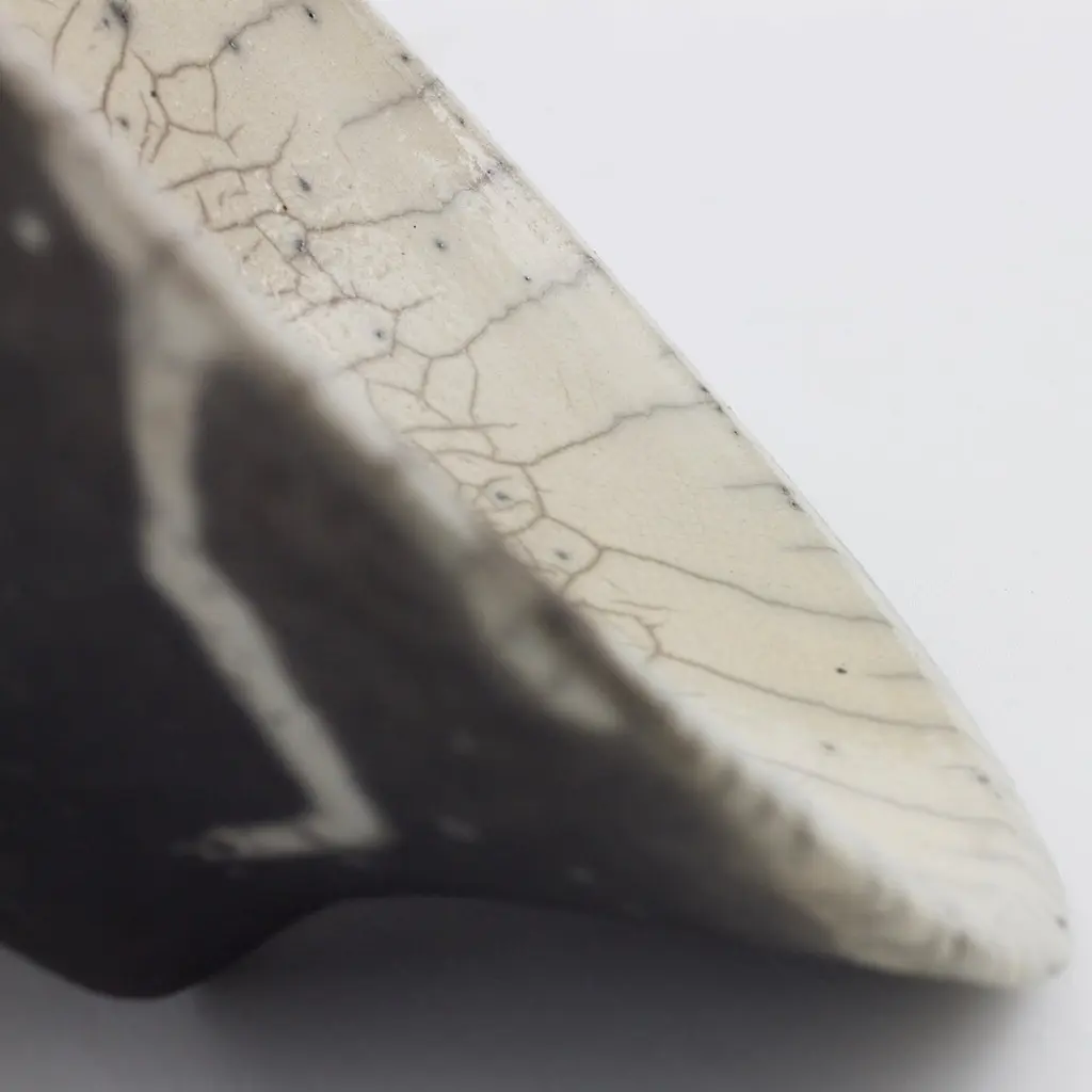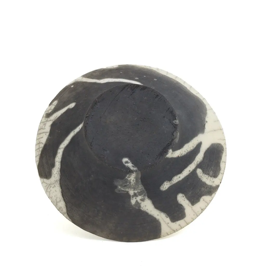 Japanese Modern Laab Cratere Vase Raku Ceramic Black White Crakle Spiral
