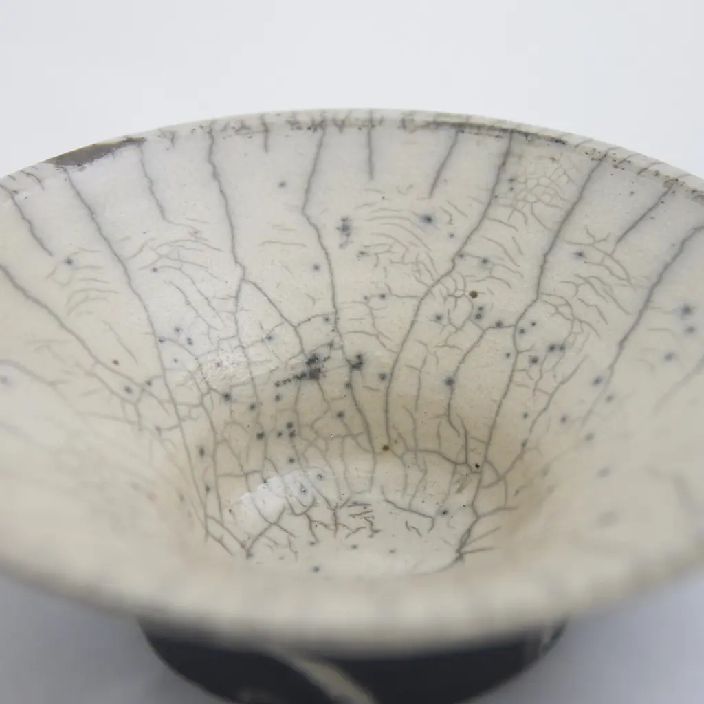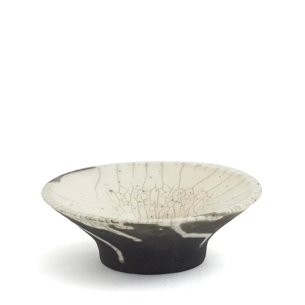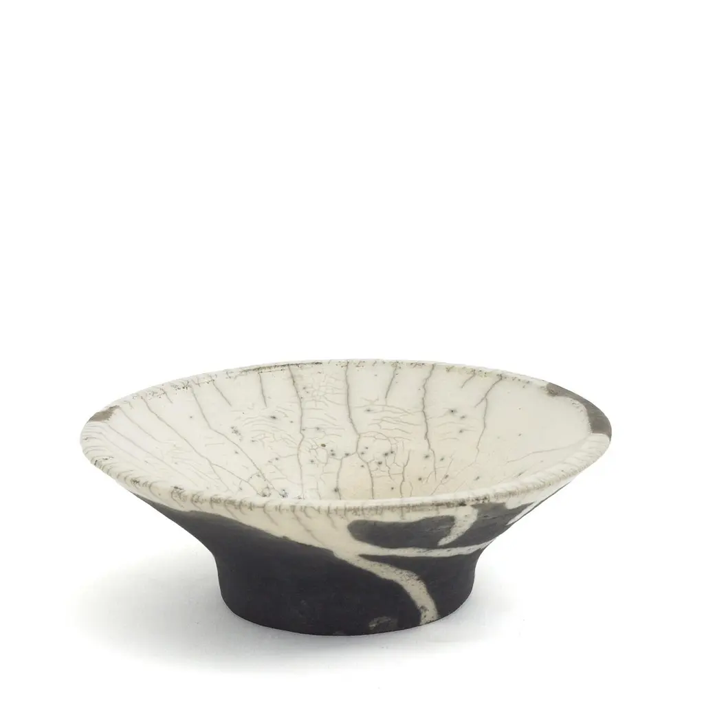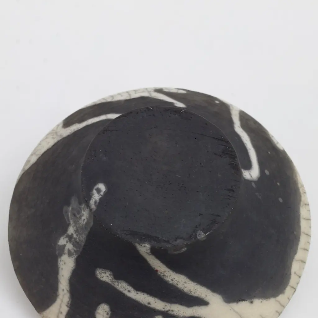 Japanese Modern Laab Cratere Vase Raku Ceramic Black White Crakle Spiral