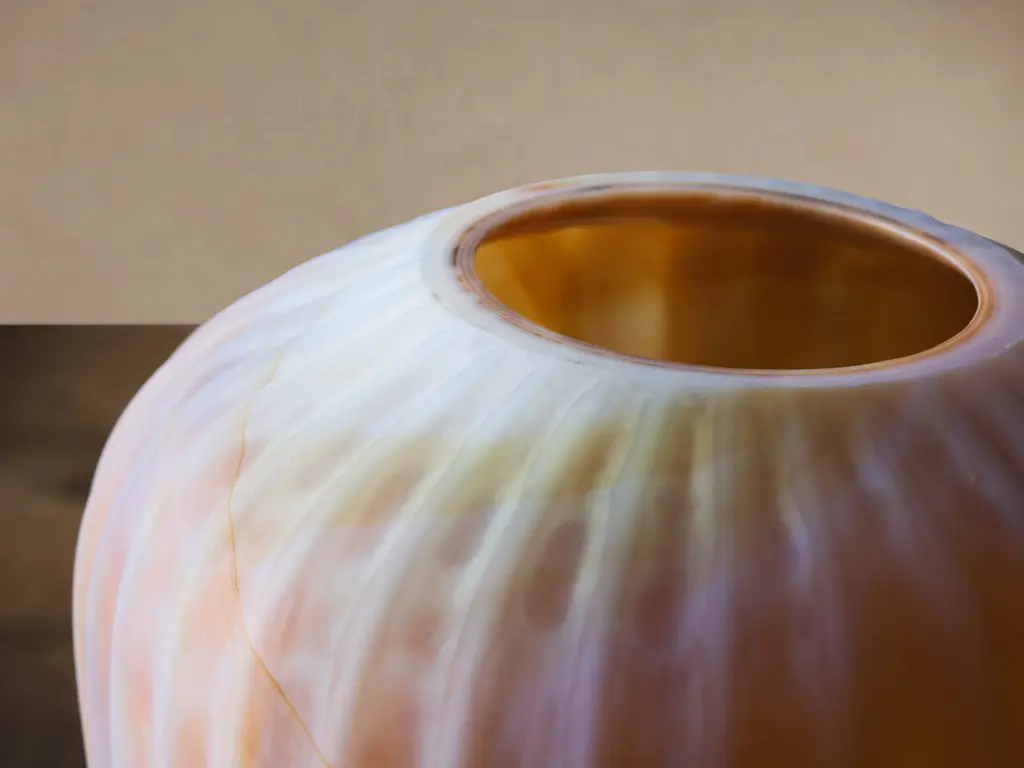 Celebrating natural beauty and the unique tones of milky jasper, our Jasper Vase is hand-blown by artists in India. Fill it with your favorite cut flowers or display our Jasper Vase on its own for a beautiful, one-of-a-kind accent in any room. Made from 100% glass the color of milky jasper. Hand-blown in India. Due to the nature of hand-blown glass, slight variations add character to each piece without affecting its quality or performance. Watertight vase may dampen along its bottom after prolonged use. See the Care section for more details.