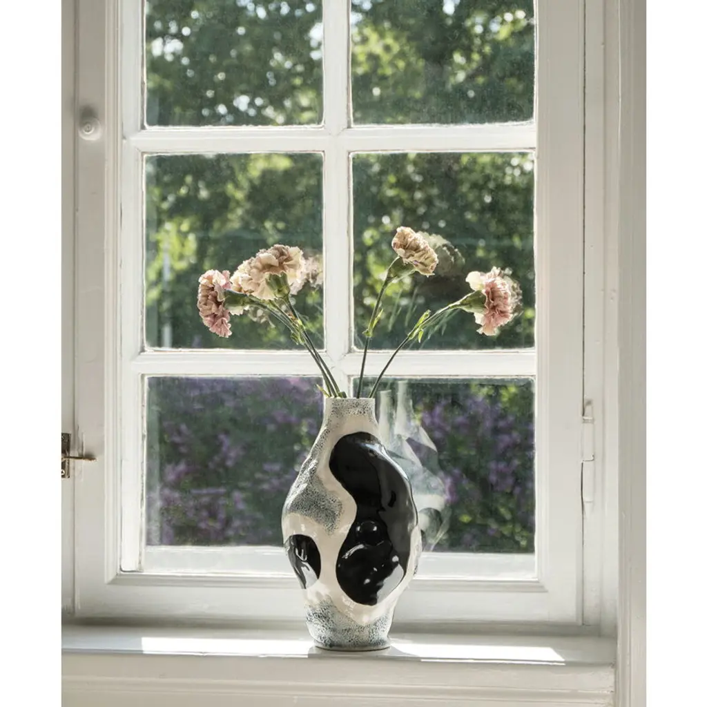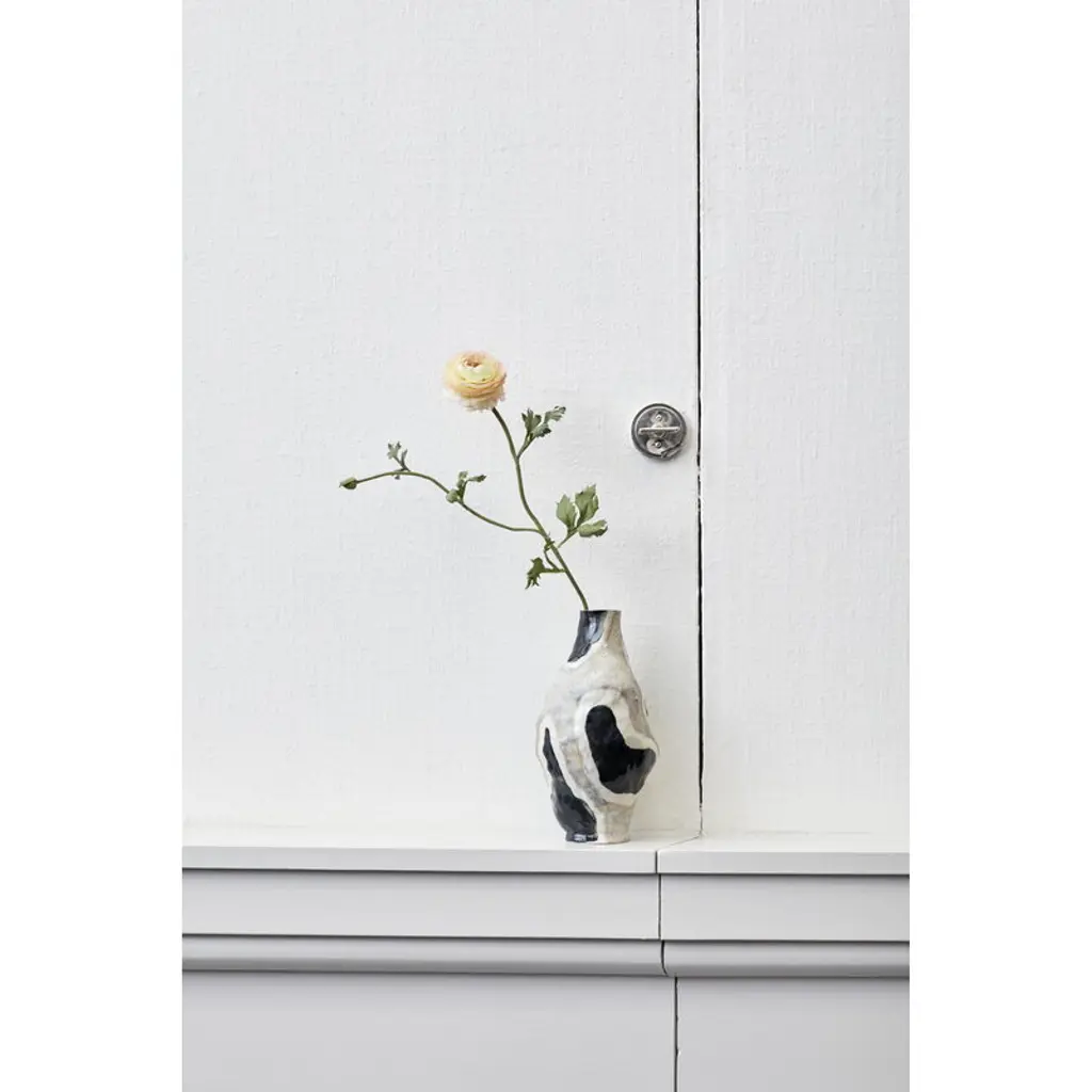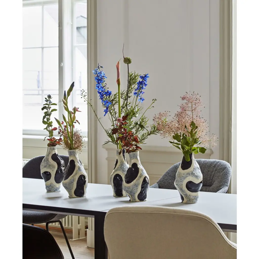 HAY's Glossy cow vase was designed by artist Jessica Hans. Hans draws inspiration for her work from nature, more specifically the organic patterns on plants and stone. The hand-painted motif highlights the tactile surface of the stoneware vase, giving it a unique expression. The modern, sleek design creates a stunning combo together with a vibrant arrangement of flowers, but the Glossy cow vase also makes a strong stand-alone piece.