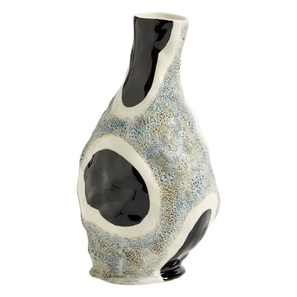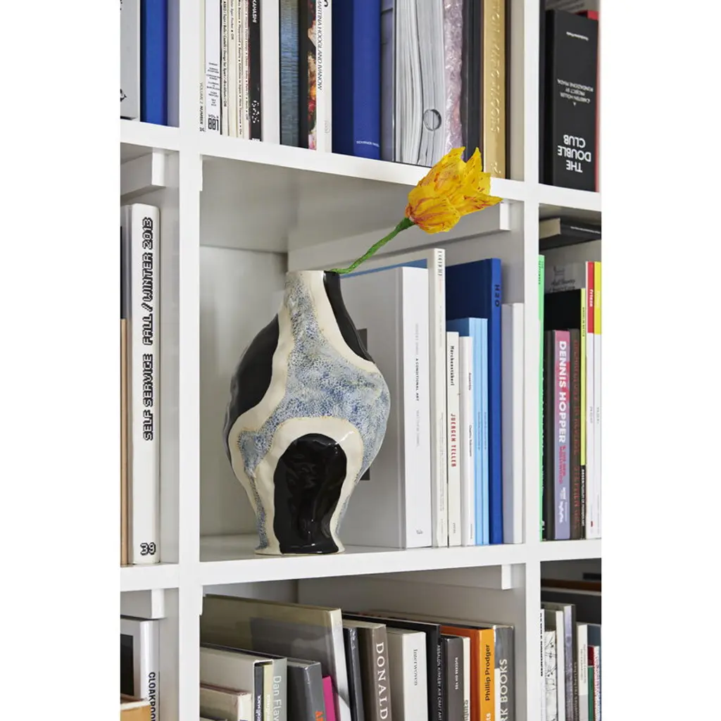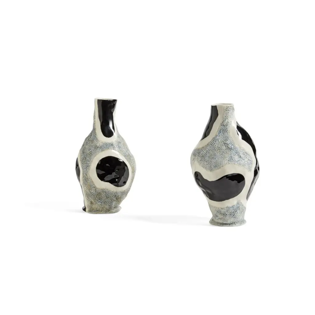 HAY's Glossy cow vase was designed by artist Jessica Hans. Hans draws inspiration for her work from nature, more specifically the organic patterns on plants and stone. The hand-painted motif highlights the tactile surface of the stoneware vase, giving it a unique expression. The modern, sleek design creates a stunning combo together with a vibrant arrangement of flowers, but the Glossy cow vase also makes a strong stand-alone piece.