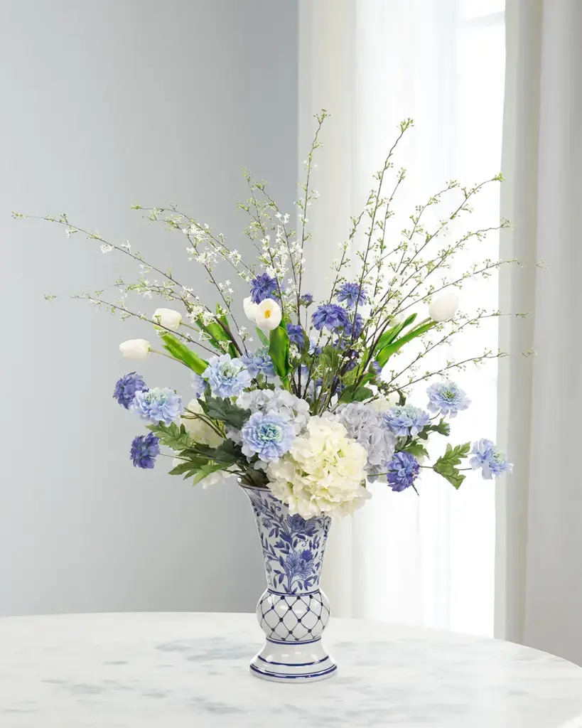 John-Richard Collection Blue Mist 39" Faux Floral Arrangement In Glass Vase | Horchow