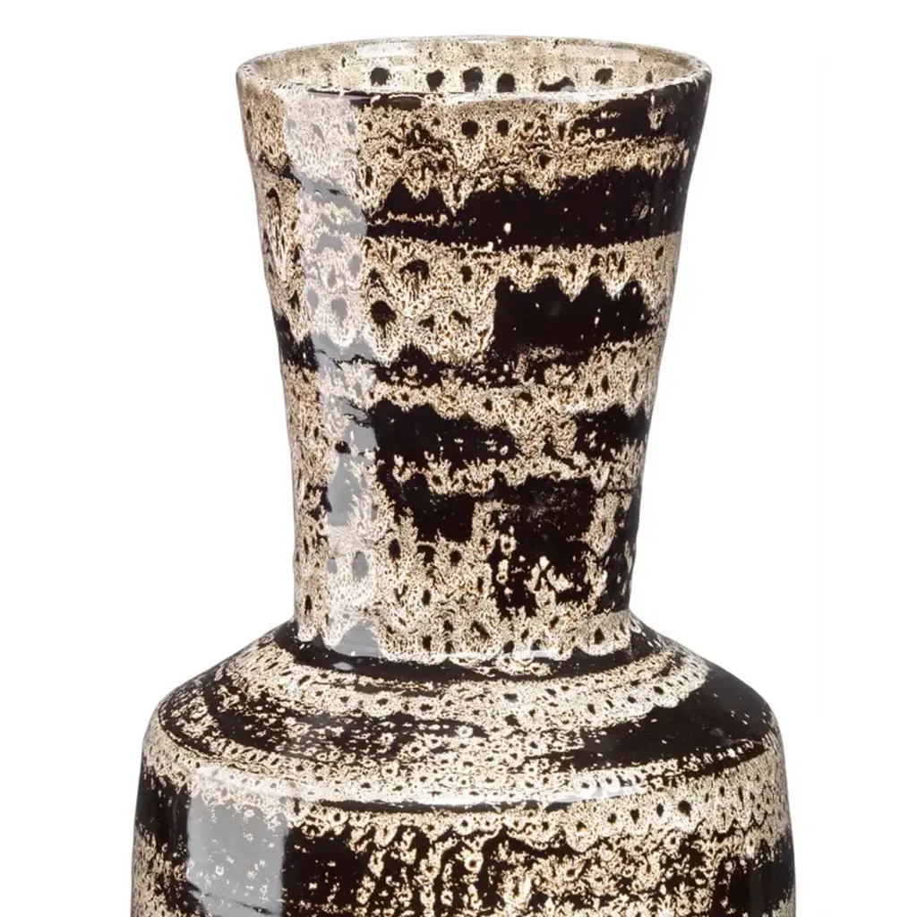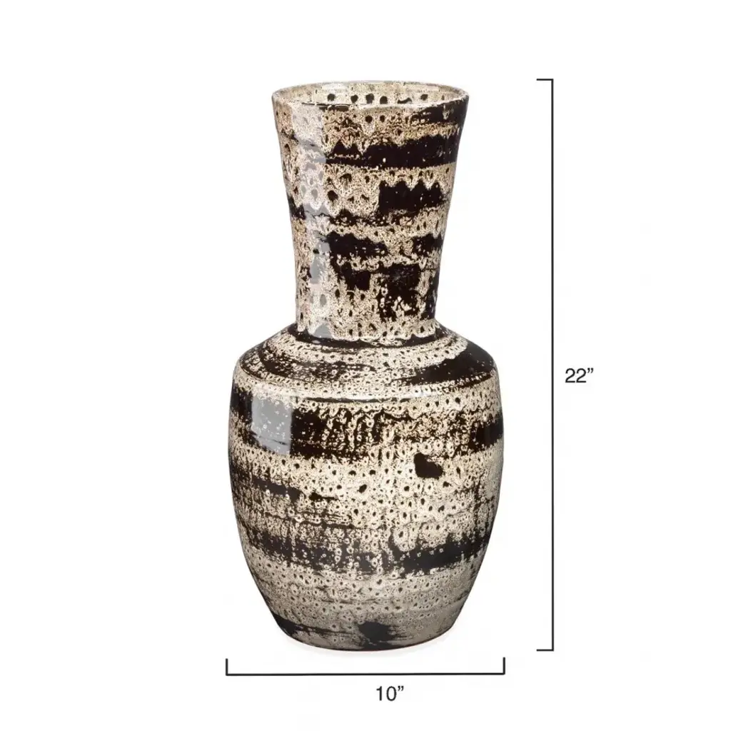 Add an artisinal accent to a console or dining table with our decorative vase. Carefully crafted of ceramic, it features a vibrant pattern in neutral palette. Each piece is handmade, yielding distinctive patterns, hues and shapes. Display alone or in multiples around your home, brimming with flowers or standing artfully empty like beloved, collected objects.