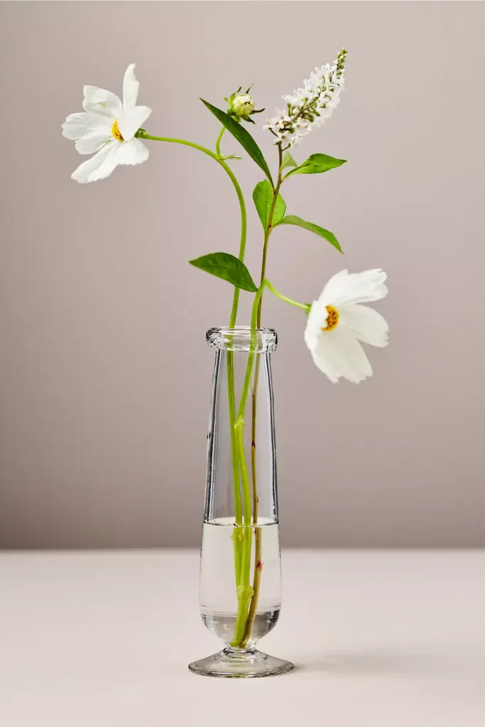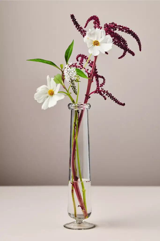 Spotlight your single bloom in this tall, thin, and stately vase featuring soft, rounded curves.