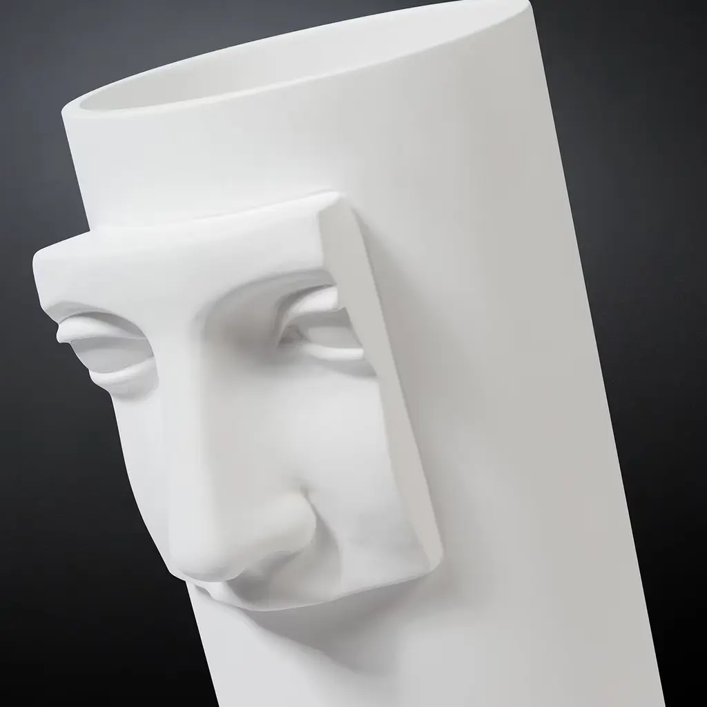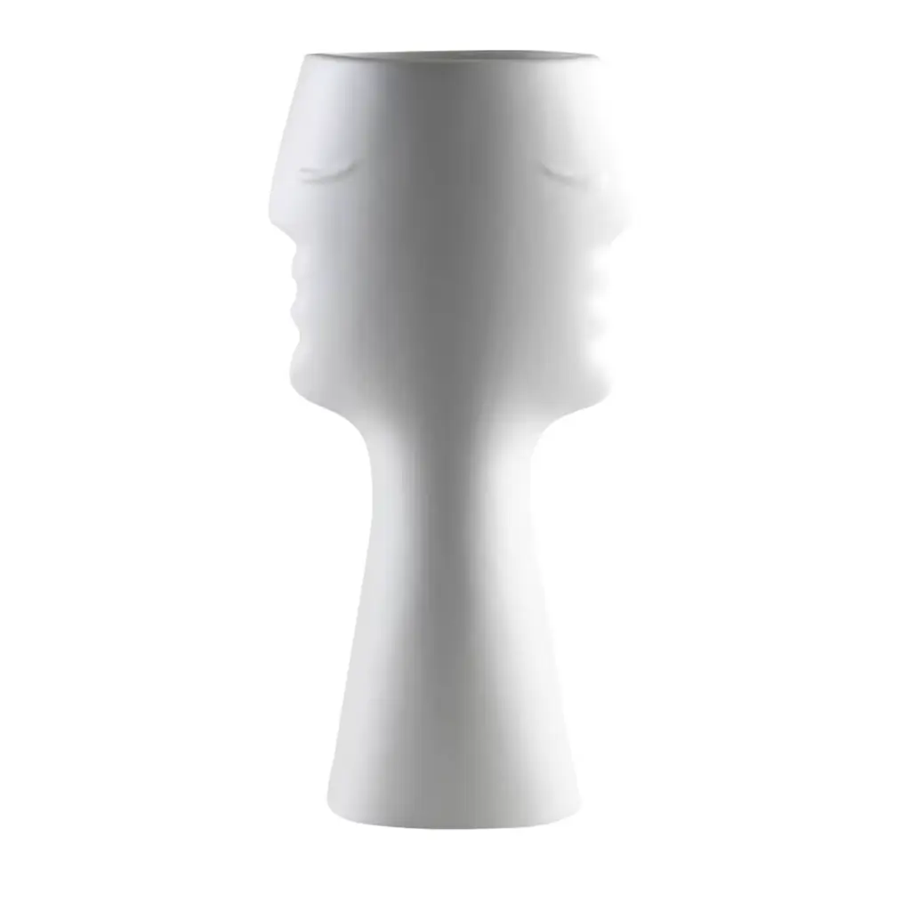 Either paired with other vases from the same series or exhibited alone, this stunning vase will make a superb decorative display piece in any contemporary decor. A modern interpretation of classic sculptures depicting Roman goddess Juno, this white ceramic vase is adorned with a splendid low relief depicting a close-up of the goddess' visage.