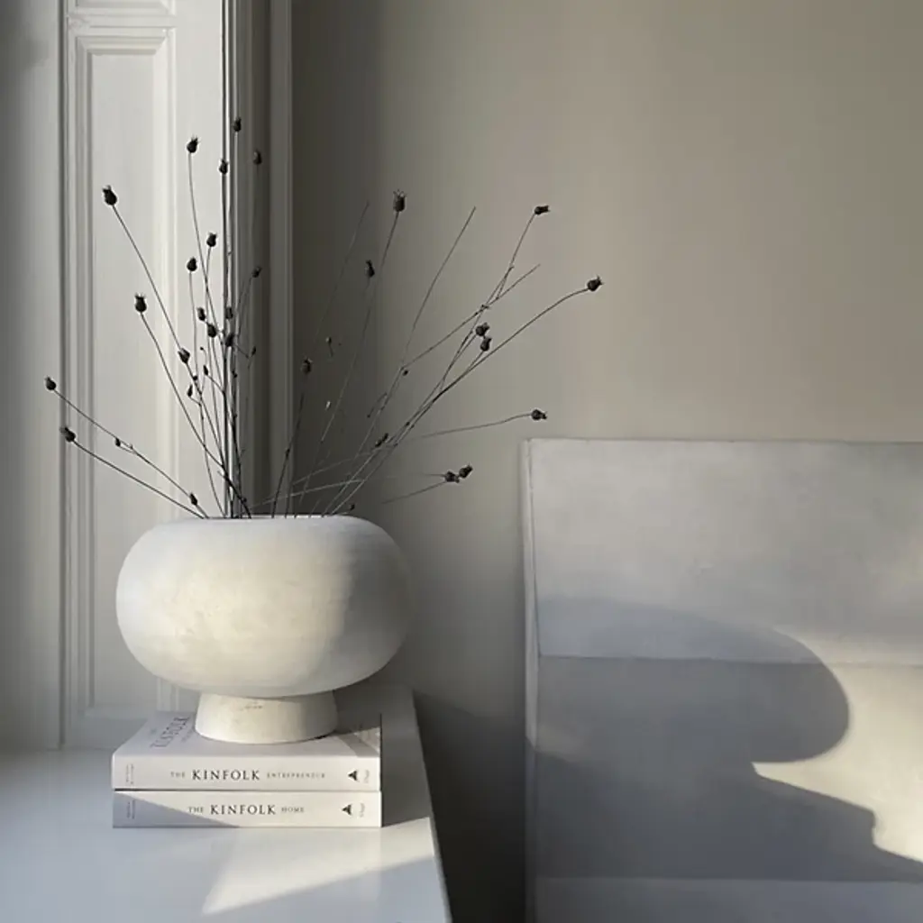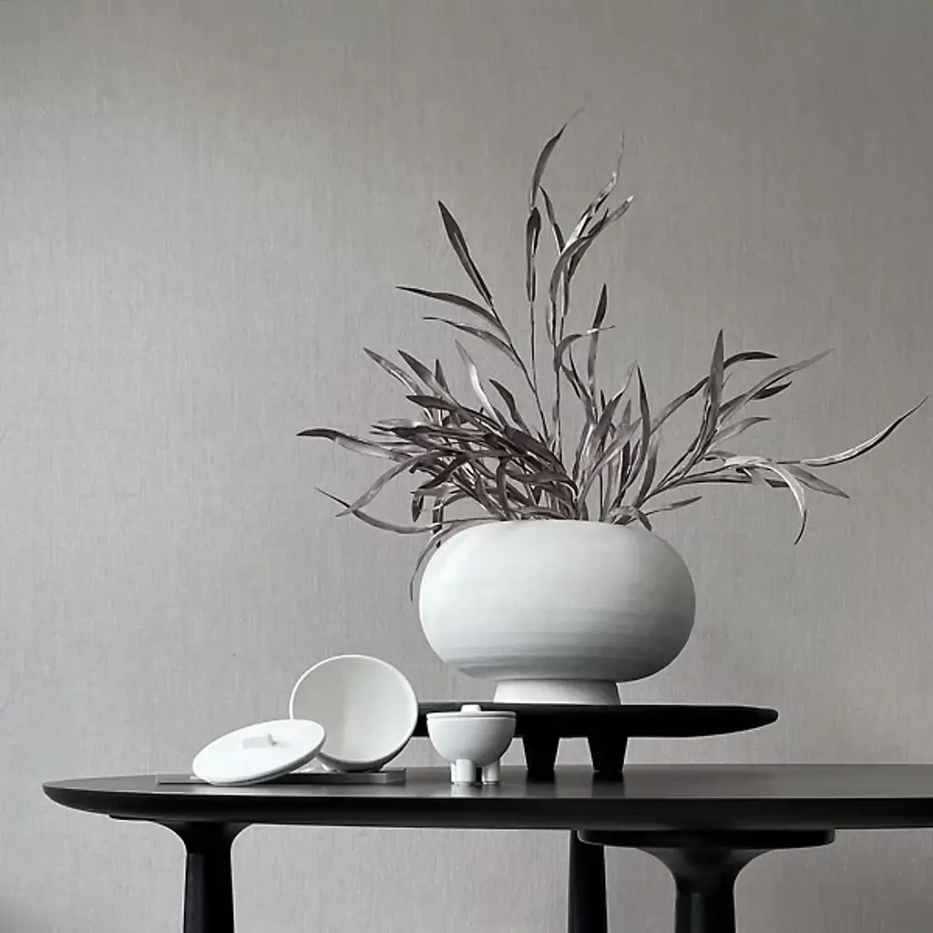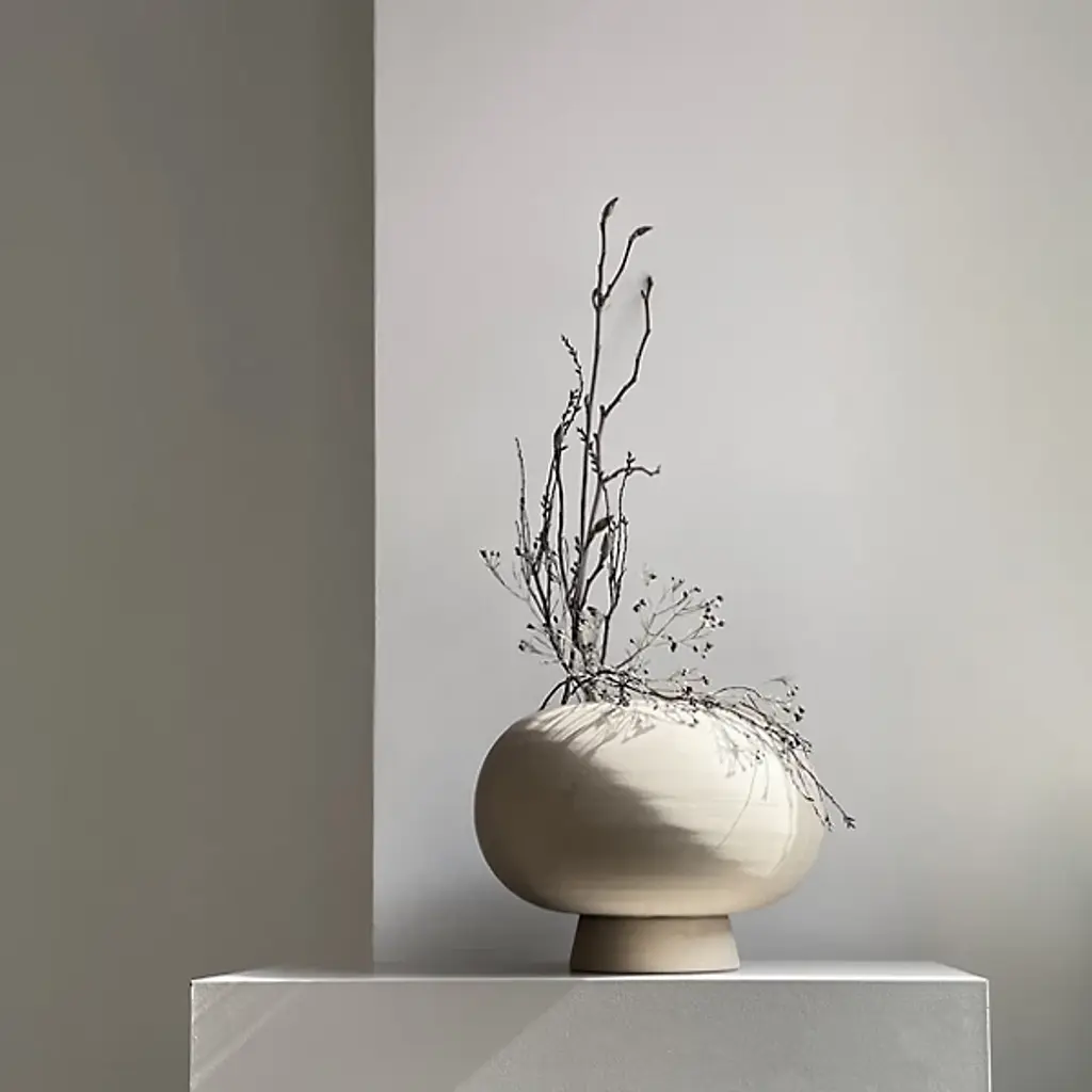 The Kabin Fat Vase from 101 Copenhagen matches the minimalism of Japanese design to the simplicity of Scandinavian character. A design collaboration between Kristian Sofus Hansen and Tommy Hyldahl, each vase is handcrafted from ceramic and draws inspiration from traditional Japanese tea bowls. It features a refined oval body perched on a small pedestal. The minimalist design creates stability and elegance, making it a perfect centerpiece, while each vase includes a protective bag for fresh flowers, accommodating its non-waterproof nature.