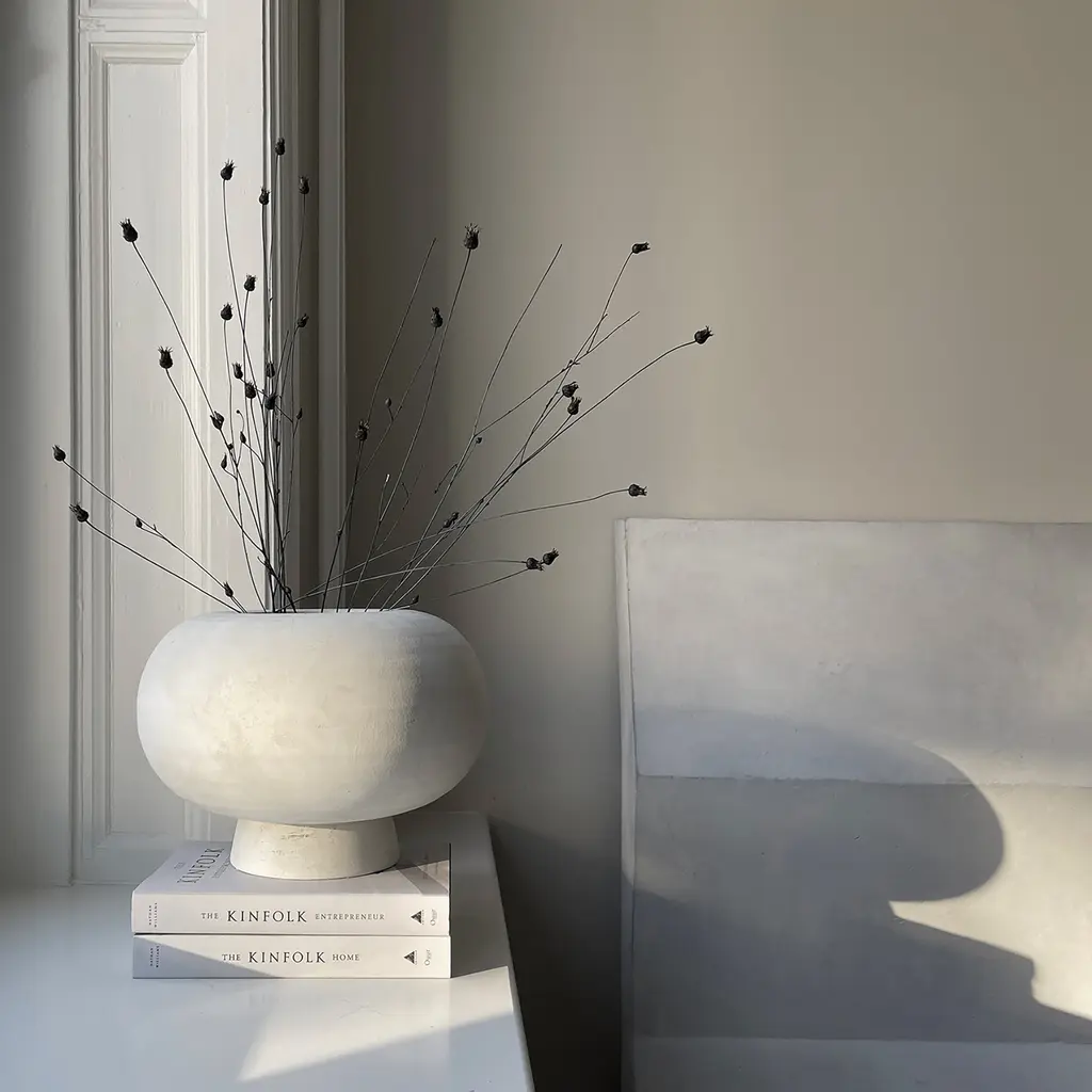 Give your home a Japanese décor accent with the 101 Copenhagen Kabin Vase, Fat. Referencing the shape of traditional tea bowls, this vase features a tapered pedestal and a spherical body, to add maximum visual impact to your home’s interior design scheme. The simple yet bold design converts simple flowers arrangements into room centerpieces. Perfect for dried decorative plants, including lavender, eucalyptus or meadow flowers, the Kabin vase can also house fresh plants with the impermeable bag which is included in the package. Glazed by hand, every vase from this series is one-of-a-kind, just like a handmade sculpture, and may feature slight variations in color and texture.