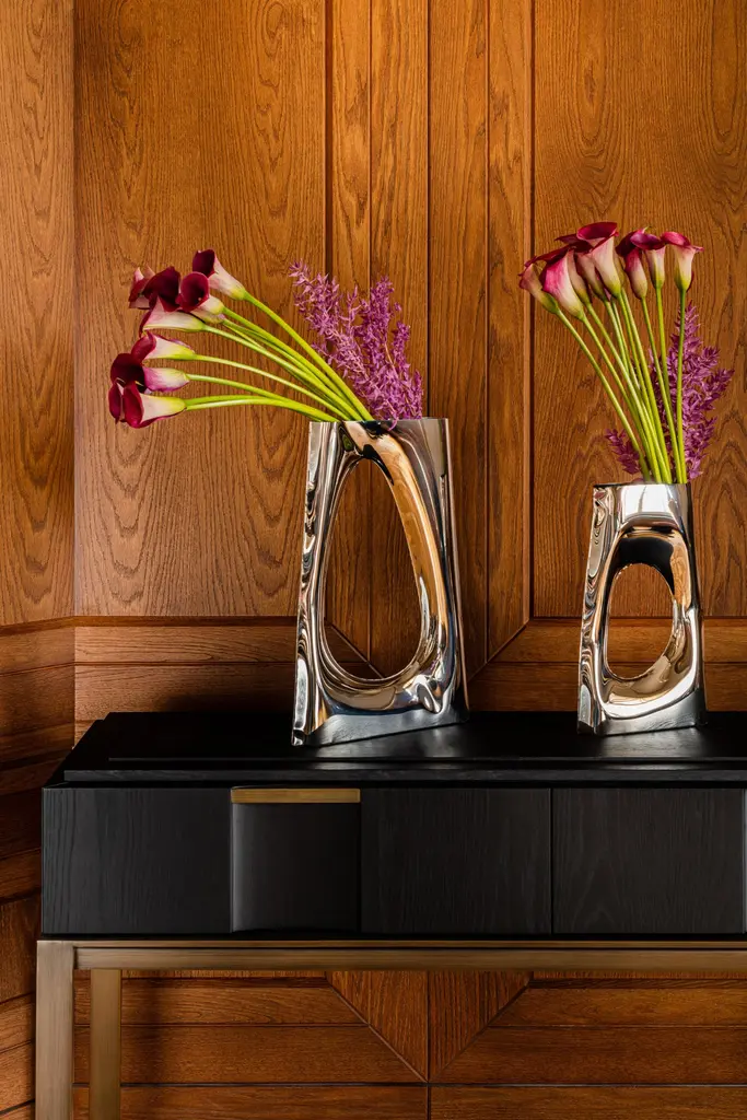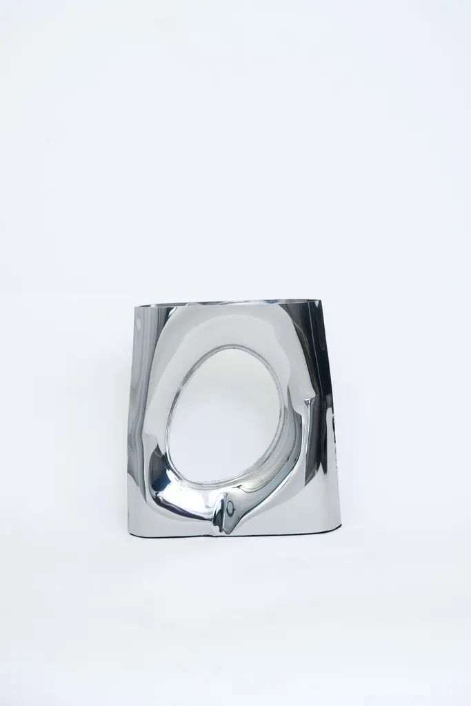 Karava vase by ZietaDimensions: H 30 x W 30 x D 6 cm.Materials: polished stainless steel.Trapezoidal form of expression Karava Vases introduce an inspirational geometrical narrative to interiors, shifting the standards of exhibiting flower compositions.The unobvious shape and intrigu- ing oval cut-out in the middle add a unique sculptural context to the concept of a vase.Zietas main goal is to deliver uniqueness and customization in design and constructions while keeping the production, transport and warehousing innovatively efficient.This is how they imagine the future world: Light, durable structures of customized applications produced on demand out of one-of-a-kind parts, yet efficiently.They use computer controlled production process. Customized pattern, customized form, customized function, one-of-a-kind product and outstanding precision are what they deliver.You will find all of this philosophy reflected in the products. They research, they discover new possibilities, they play with forms and they deliver a beautiful, innovative, surprising outcome to people who love design and who care about the design development.They believe their work is a valuable contribution to the world of design not only by the unique beauty of the forms but most of all by opening ultra-innovative opportunities of forming and new paths for the world of future.
