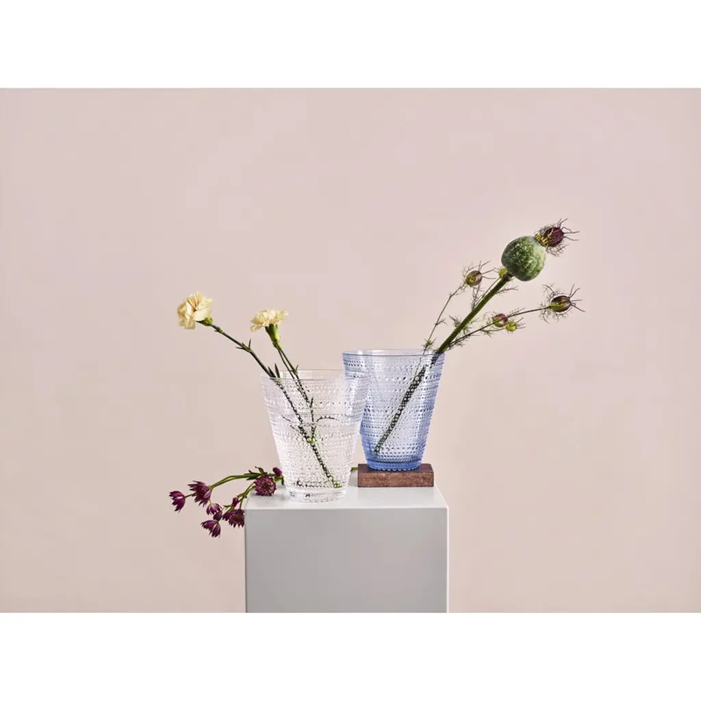 Iittala's Kastehelmi vase is part of the popular glass collection designed by Oiva Toikka. Decorated with strings of glass bubbles, the Kastehelmi vase makes a distinctive centerpiece for your table settings or a lovely decorative item on a windowsill or side table. The Kastehelmi collection came about in 1964, when Oiva Toikka explored ways to conceal joint marks in pressed glass. The result was a design featuring rings of delicate glass droplets that resemble dewdrops glistening in morning light. Kastehelmi, Finnish for dewdrop, has since become one of Toikka’s most beloved series of glassware.
