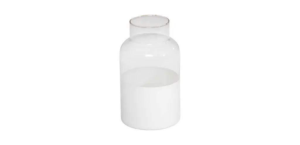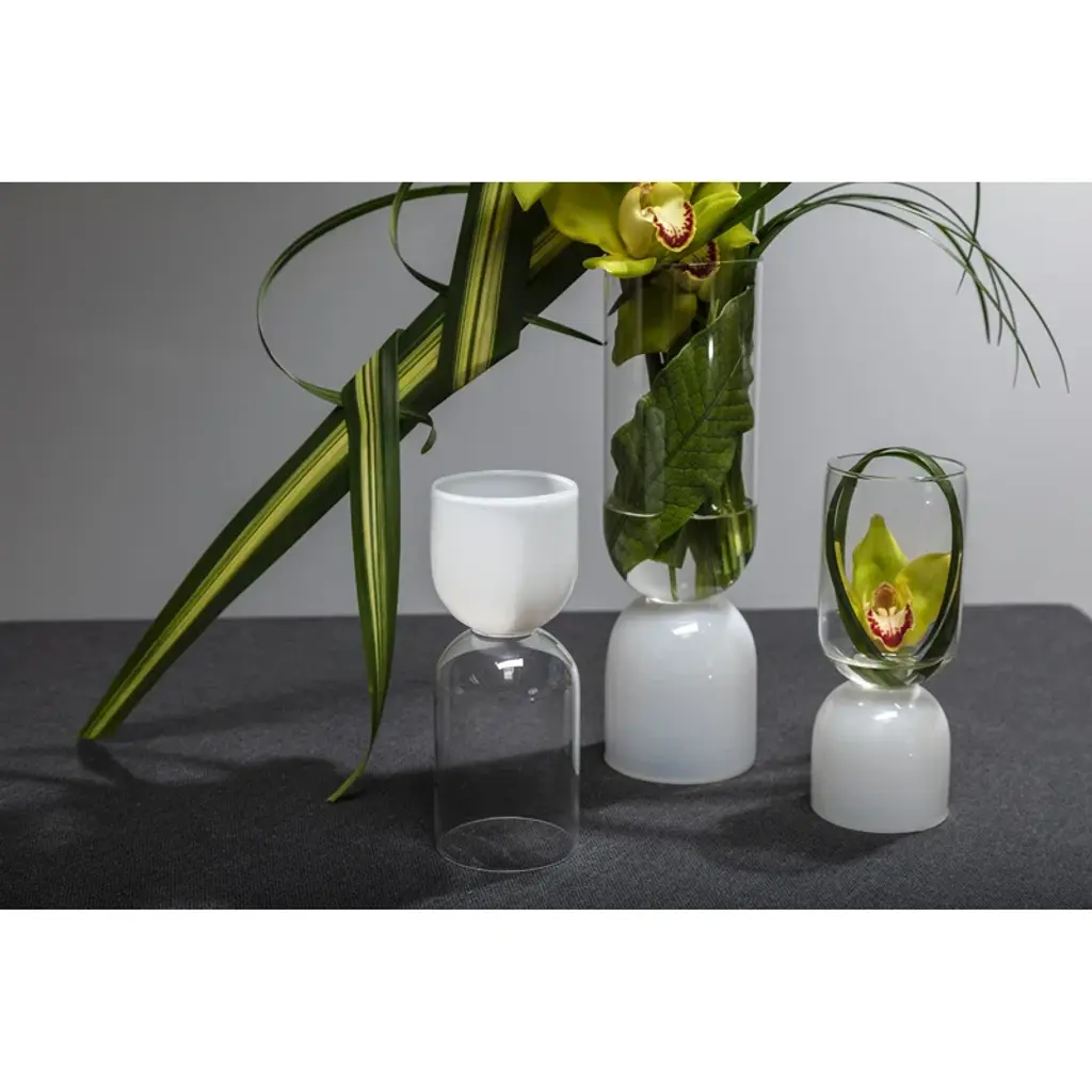 This innovative, versatile vase proves that simplicity can be stunning. The handmade Vase is made from clear borosilicate glass on one end & milk glass on the other. Use either side for propagation clippings, hydroponics, or displaying botanicals.