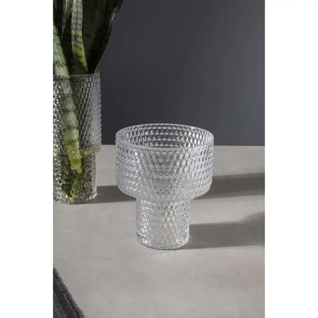 Keep plants in the glass vase to keep an eye on new growth, or fill with your favorite florals. This handmade bubble drum vase is subtly textured with an innovative shape to elevate your decor.