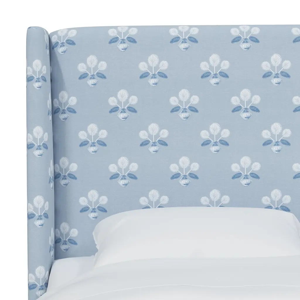 Exclusive to One Kings Lane: Upholstery in a painterly floral motif adds feminine allure to this wingback headboard. Generous padding makes this an ideal choice for anyone who likes sitting up to read or watch TV in bed.