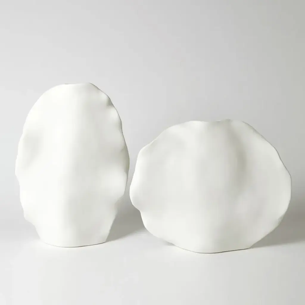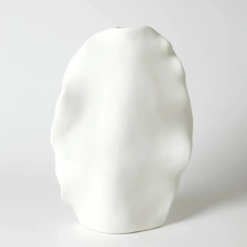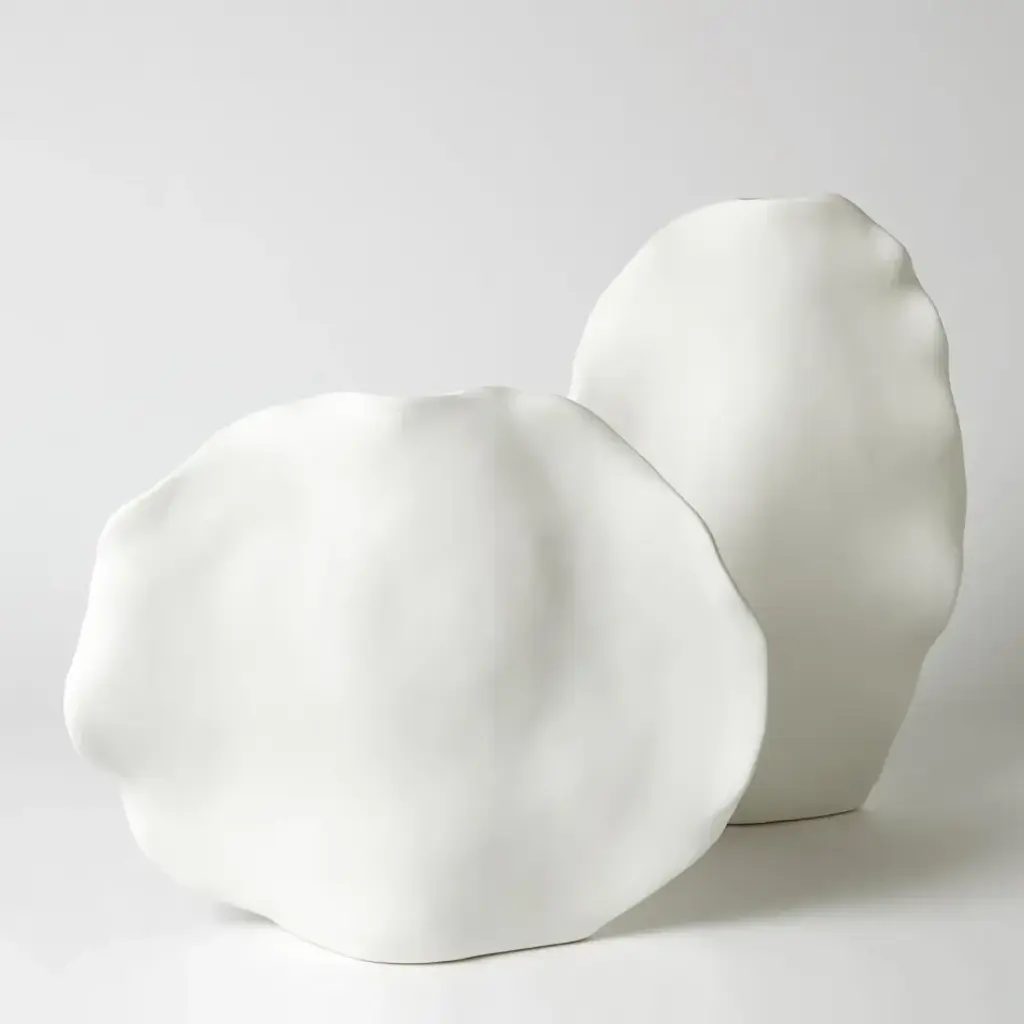 This organic shaped vase is available in matte white and in two sizes. Handcrafted in Italy. From a fashion forward perspective, Global Views offers accessories, furniture, statement lighting, and an assortment of rugs and mirrors to add beauty and joy to your home.