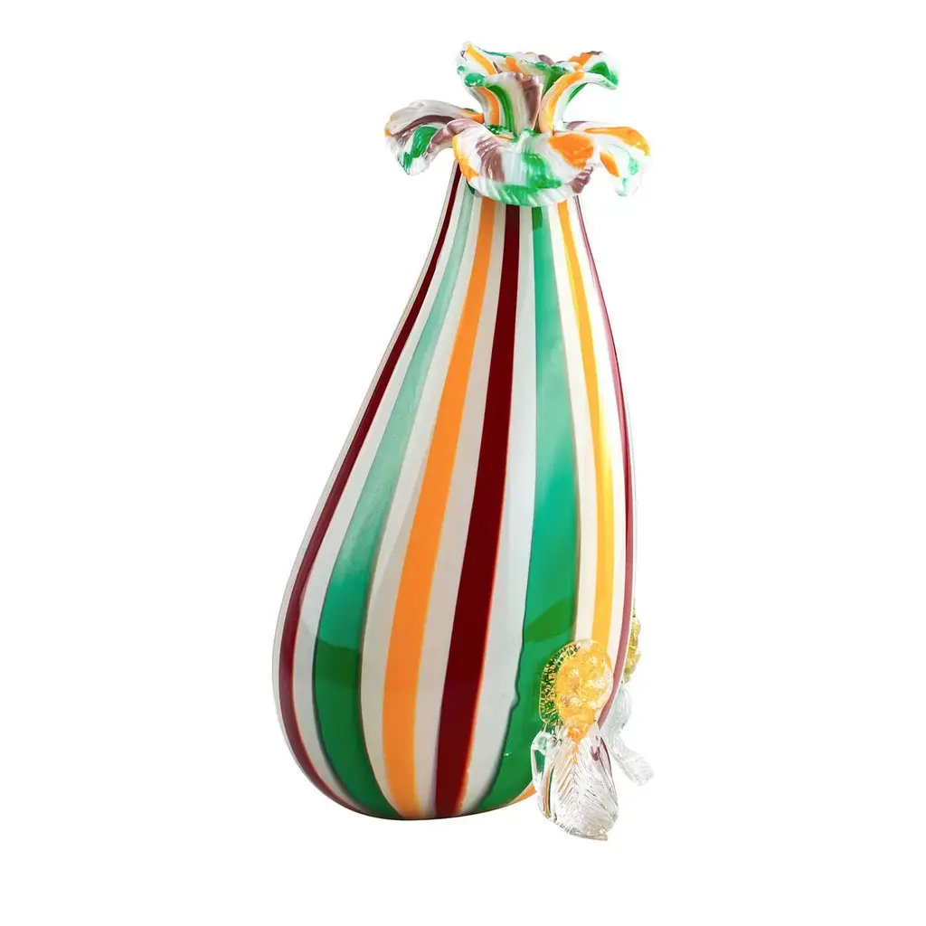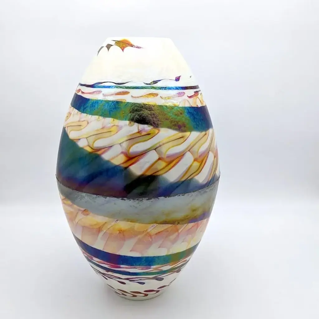 KENYA is an oval artistic multicolor Murano glass vase with iridescent pattern. It is an elegant piece of furniture to decorate your own house with style.Here you can find unique handmade glass vases in original Murano glass. They are the product of a long tradition of Venetian glass craftsmanship that has been going on for centuries. They are authentic works of art that perfectly combine the tradition of Murano glass processing and the innovation of contemporary Italian design. All YourMurano products are artisanal and of the highest production quality. Non-substantial variations in shape, size, color, and/or minor imperfections are inevitable and are typical of manual glasswork, highlighting the artisanal craftsmanship.