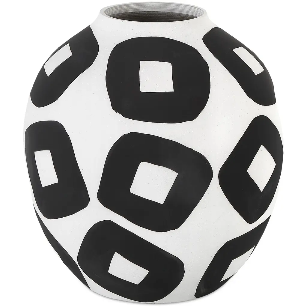 The sketched pattern on the surface of the Kenzo Large Vase was inspired by the art of Imperial Japan, particularly the Enso, a prolific symbol in the Zen practice of painting. Made of porcelain, the black and off-white vessel is finished on the inside and it is hand-thrown, hand-glazed, and hand-decorated so the patterns on each vase will vary slightly.