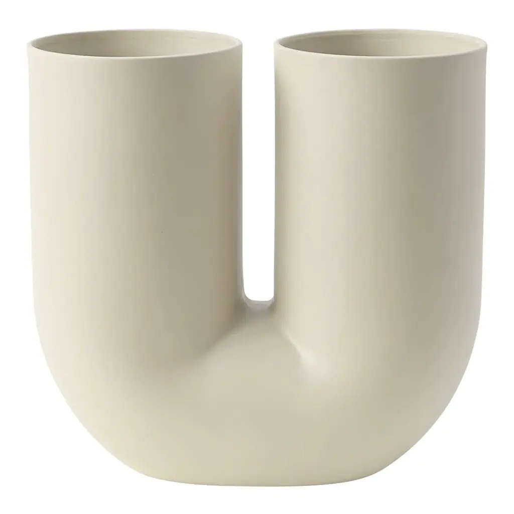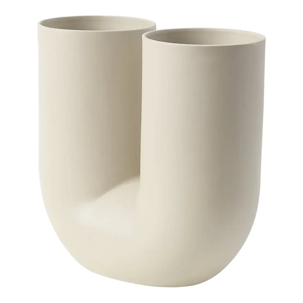 EARNEST STUDIO ON THE DESIGN: “My starting point for the Kink Vase was an exploration of how new forms could be created through the digital manipulation of simple shapes. The design combines this appreciation of modern technology with traditional ceramic craft, resulting in a piece that is both contemporary and sculptural. The graphic and playful appearance of the Kink Vase, combined with its double opening, which suggests a new way to arrange flowers, infuses its surroundings with joy." Introduced alongside the Post Lamp Series as the first-ever designs by Rotterdam-based Earnest Studio for Muuto, the Kink Vase brings a contemporary form to the archetypal flower vase through a combination of traditional craftsmanship and playful design language. Shaping a new form language for the typology of a vase, the lines of the Kink Vase are created through digital manipulation of simple shapes. The design combines an appreciation of modern technology with traditional ceramic craftsmanship, making the design an art piece, even when not in use. Adding to that, its characterful kink gives the design a sculptural expression with one being able to use one or both tubes for floral arrangements.
