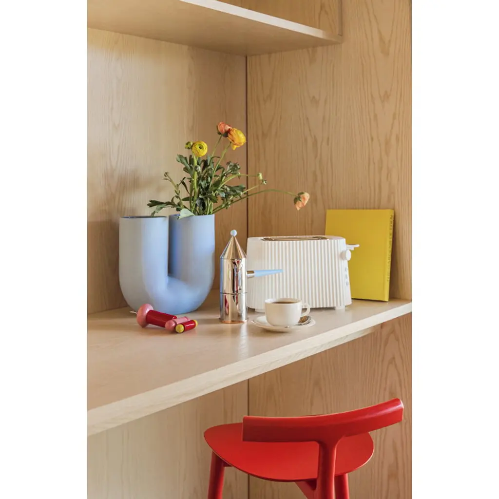 Muuto’s Kink vase is a combination of traditional craftsmanship, modern technology and insightful design. When designing the vase, Earnest Studio wanted to explore the potential of digital manipulation of simple forms. The result is the playful, tubular Kink vase with a sculptural look that will liven up any modern interior, both as a stand-alone art piece and as a versatile vase. The Kink vase is made of porcelain with the outside left unglazed and natural; the inside is covered with a stylish glossy glaze.