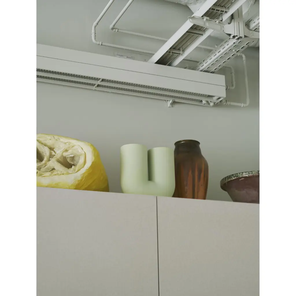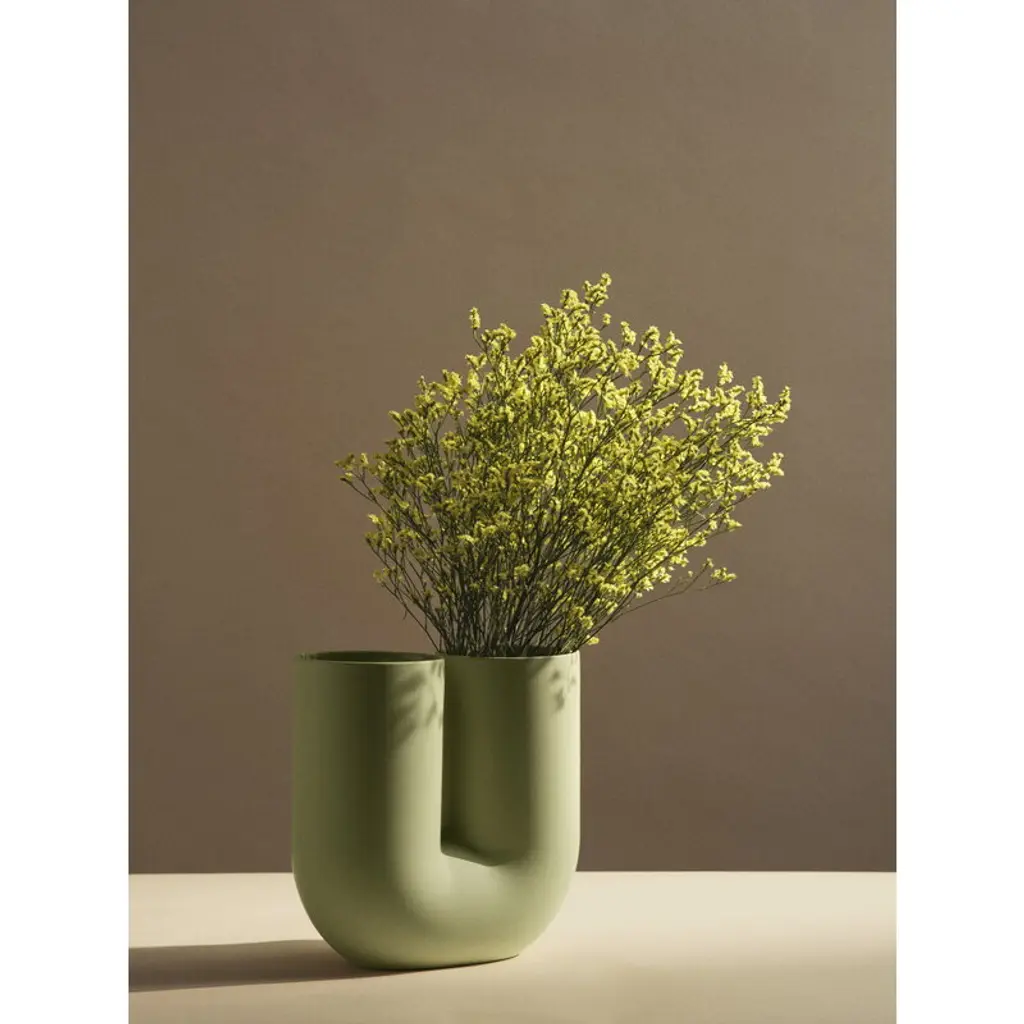 Muuto’s Kink vase is a combination of traditional craftsmanship, modern technology and insightful design. When designing the vase, Earnest Studio wanted to explore the potential of digital manipulation of simple forms. The result is the playful, tubular Kink vase with a sculptural look that will liven up any modern interior, both as a stand-alone art piece and as a versatile vase. The Kink vase is made of porcelain with the outside left unglazed and natural; the inside is covered with a stylish glossy glaze.
