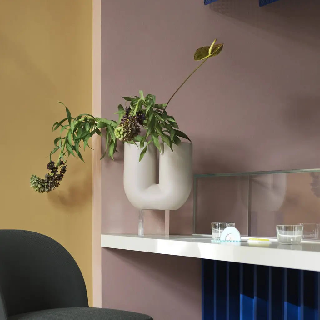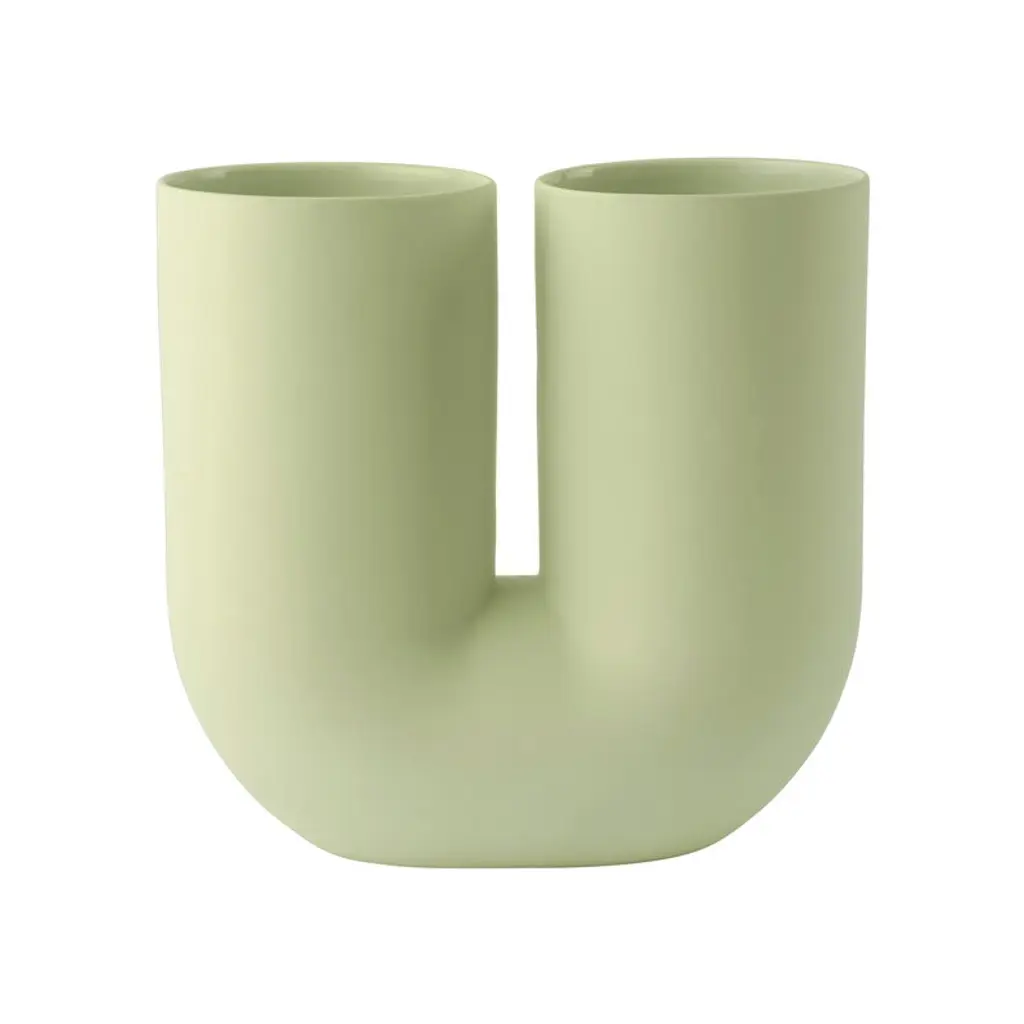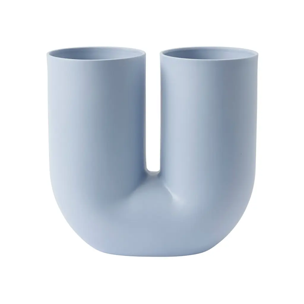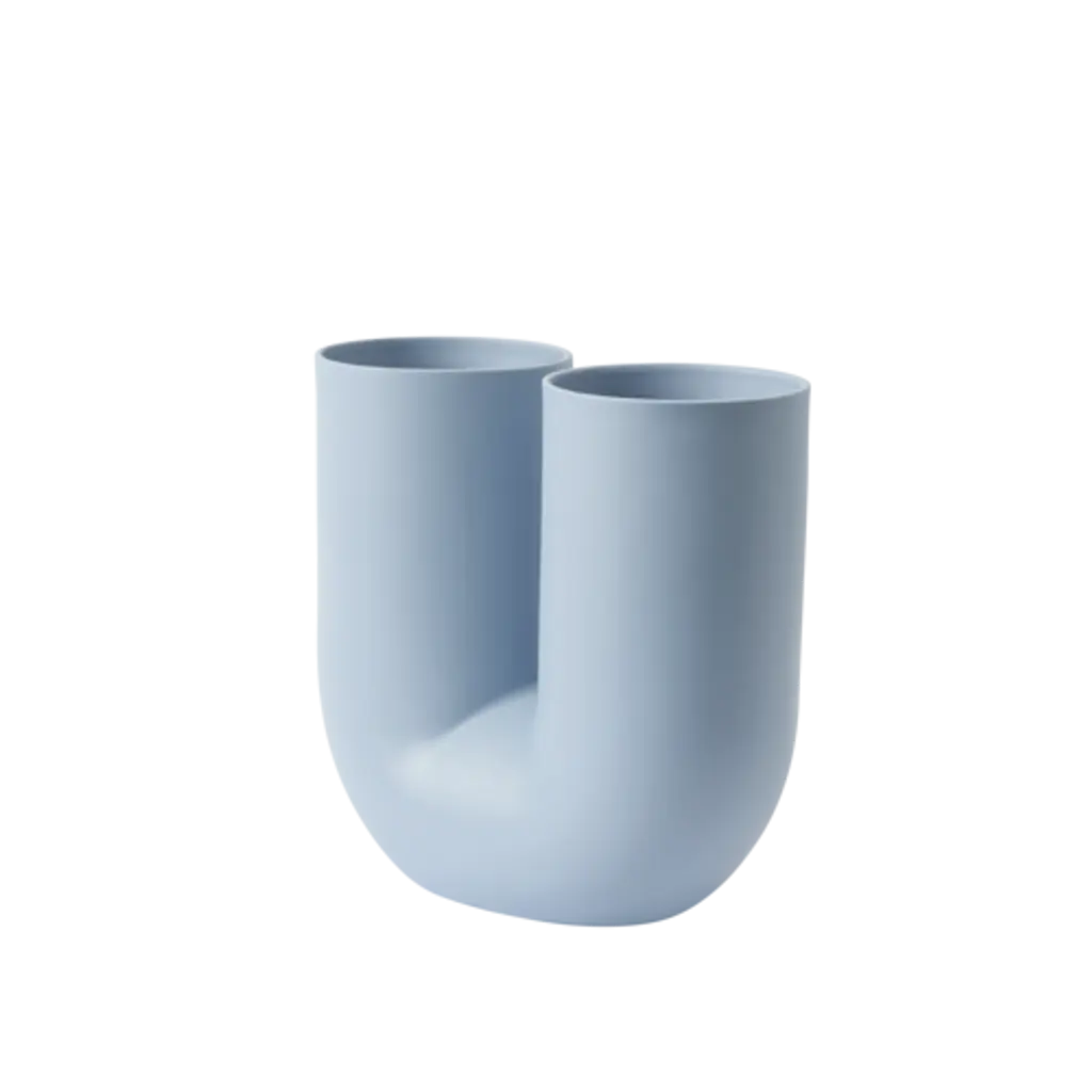 American-born and now Rotterdam-based, Rachel Griffin’s double vase reflects both her sense of whimsy and her experience as a graphic designer. Kink’s unusual shape is achieved with digital means to fashion the molded porcelain vessel before firing and a final glazing just on the inside for a refined contrast. Fill either or both of the openings with flowers or leave unfilled as a sculptural addition on a desk, table or sideboard.