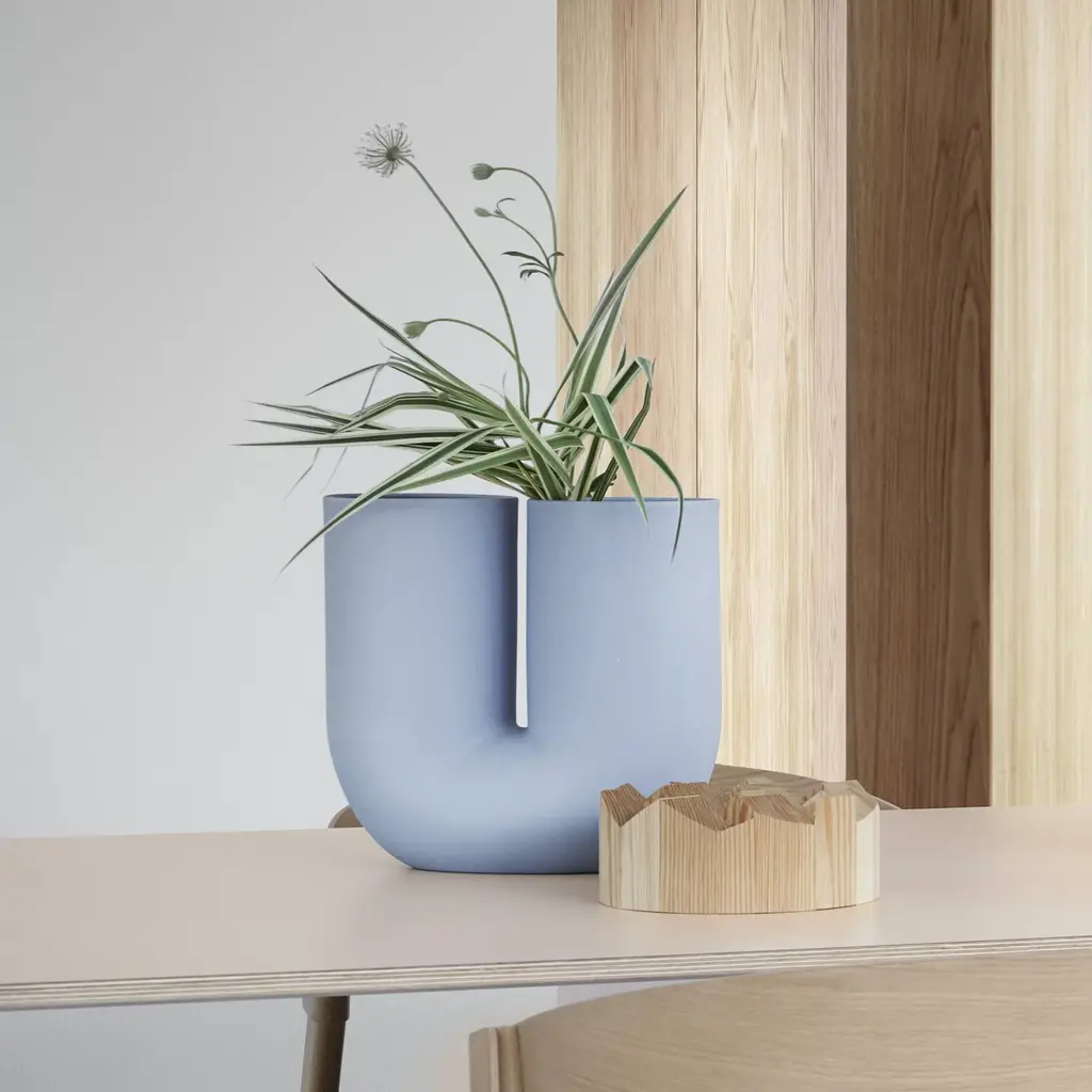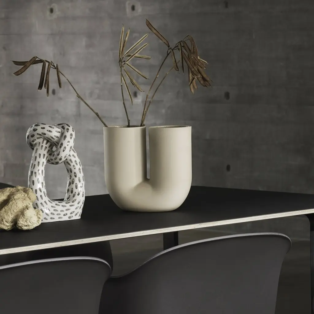 American-born and now Rotterdam-based, Rachel Griffin’s double vase reflects both her sense of whimsy and her experience as a graphic designer. Kink’s unusual shape is achieved with digital means to fashion the molded porcelain vessel before firing and a final glazing just on the inside for a refined contrast. Fill either or both of the openings with flowers or leave unfilled as a sculptural addition on a desk, table or sideboard.