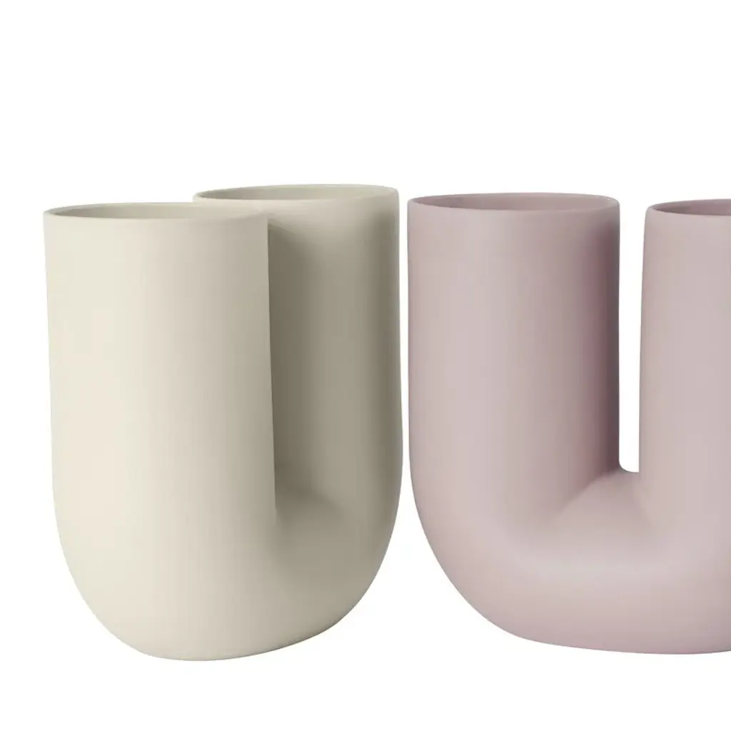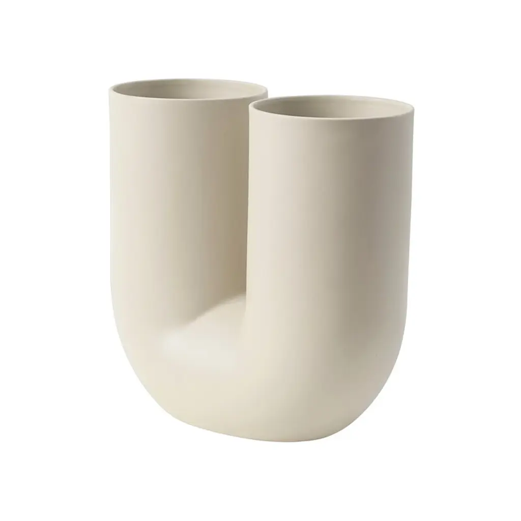 Muuto’s Kink vase is a combination of traditional craftsmanship, modern technology and insightful design. When designing the vase, Earnest Studio wanted to explore the potential of digital manipulation of simple forms. The result is the playful, tubular Kink vase with a sculptural look that will liven up any modern interior, both as a stand-alone art piece and as a versatile vase. The Kink vase is made of porcelain with the outside left unglazed and natural; the inside is covered with a stylish glossy glaze.