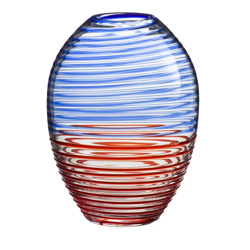 Colour stands out in the Knight vase designed by Karim Rashid, displaying its playful undulating stripes of polychromatic Murano blown glass. Dramatically mesmerizing, Knight can be personalized by mixing the bold palette of Purho for unique results. Available as 21 colors.