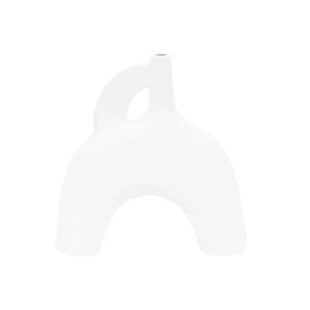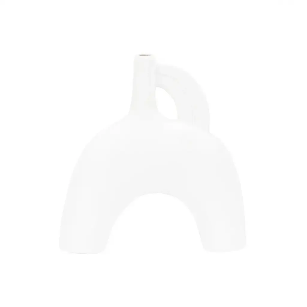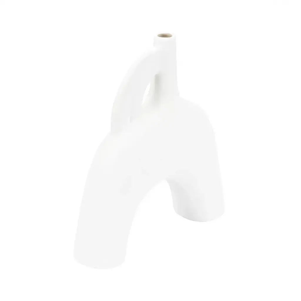 Reminiscent of the white sandy beaches in Kona, HI, this vase is ideal for tabletops in any modern home or office. The white glazed ceramic has a whimsical silhouette. May be grouped with other Kona styles to create a fun yet cohesive look on bookshelves and other flat surfaces.