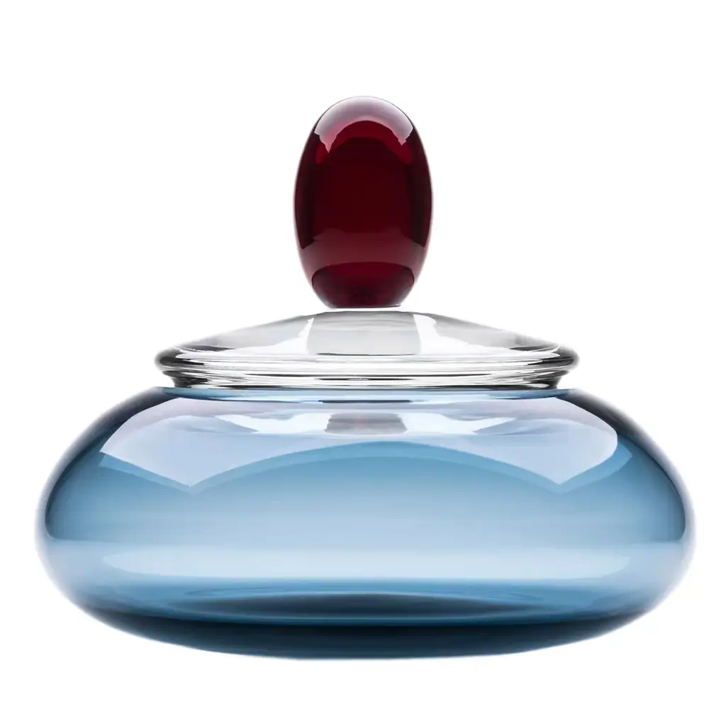 Designed by Karim Rashid, Kountess is a stately, sculptural jar with a lid. Just like its twin model, Kount, Kountess can also have different uses, whether aesthetic, acting as a stunning centrepiece, or functional, turning into a colourful container. Made of Murano blown glass, the jar plays with unusual combinations of bright colors that can be personalized to respond to everyone’s need and taste colours that can be personalised to respond to individual needs and tastes. Labeled by Maker