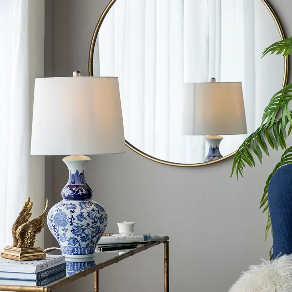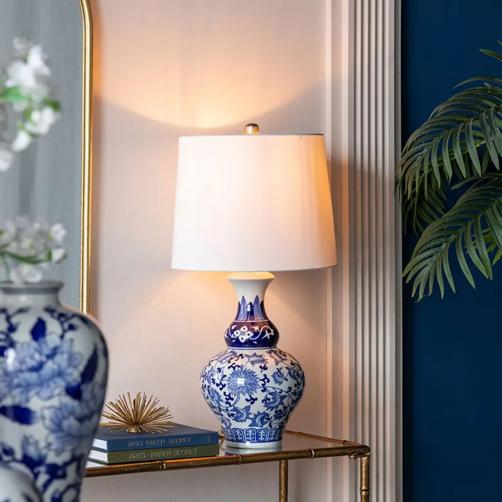 Boasting a bright, alluring series of blue patterns that dance across the crisp white porcelain, this piece offers the visuals of an accent vase and the warm glow of a table lamp. Measuring 27.6H x 14D, it will slot perfectly onto a large tabletop, countertop, desk, sideboard, or anywhere else throughout your home and office, creating a strong focal point no matter the location.