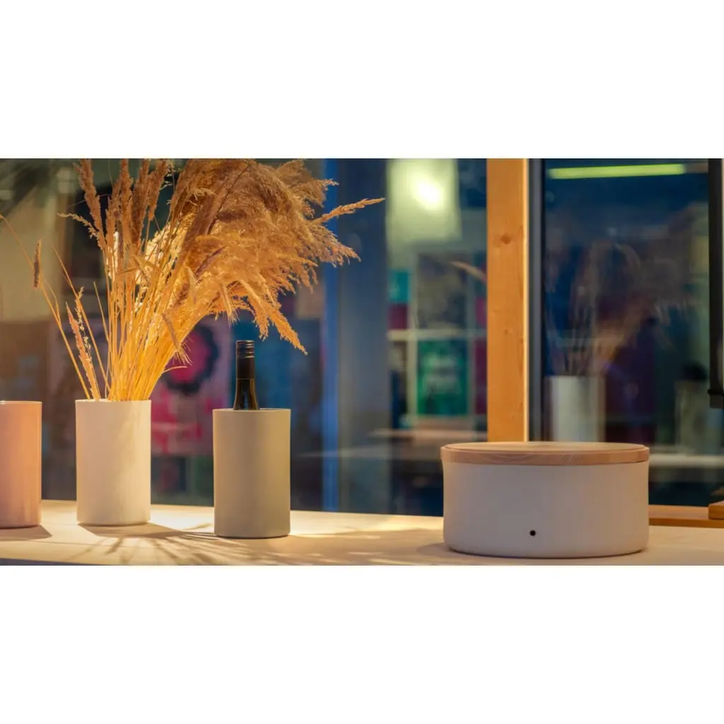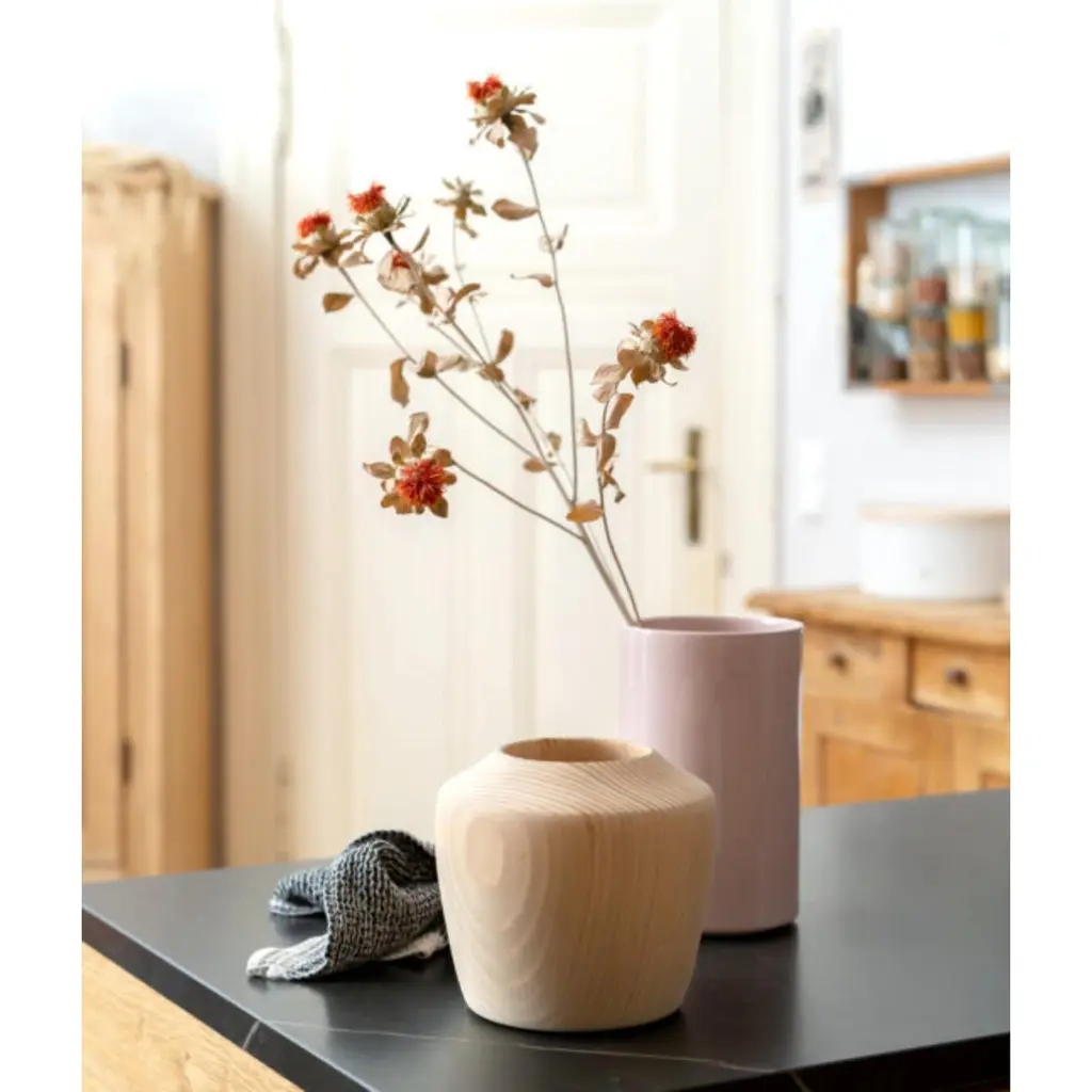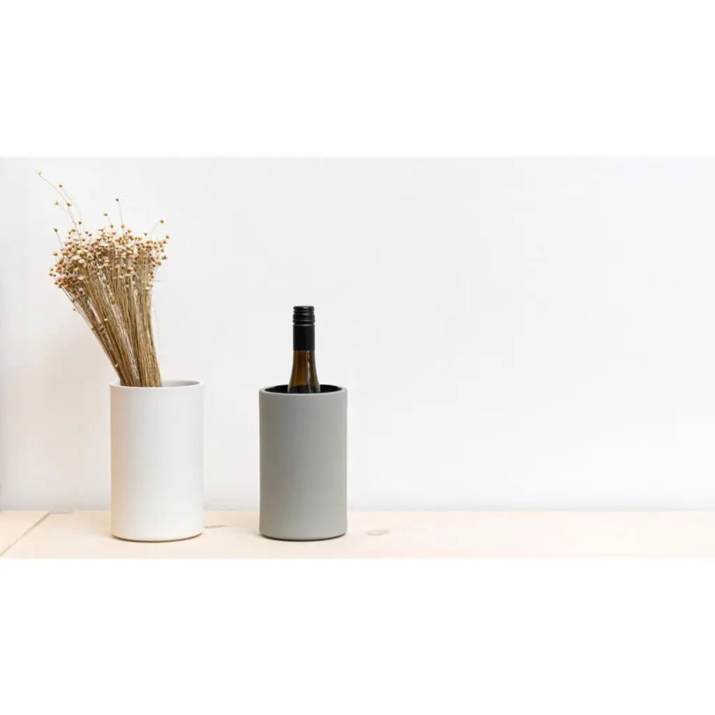 Kula Winecooler & Vase in Dusky Pink Glazed Porcelain by Frau CazeDimensions: Ø 12,5 x H 21 cm.Materials: Glazed porcelain.KULA provides the necessary coolness when it comes to cooling bottles and also doubles as an attractive vase. Due to its understated design, Kula makes sure that the attention is on the contents you fill it with – whether that is a bottle of wine or a still life of wild flora.The name Kula also refers to a ritual gift exchange system among the inhabitants of the Trobriand Islands. So we exchange flowers for wine – and vice versa.Available in different color options. Porcelain is made from natural raw materials and does not always behave in the same way. Slight variations in firing temperatures may result in slight variations in colors, textures, and size differences, even if the products are glazed and fired at the same time. Please contact us.Although Berlin has been her home for many years, Carolin – the designer behind Frau Caze, with “Caze” being a fusion of her first and last name – has never been one to stand still. She has traveled the world relentlessly in search of inspiration for her work. These travels have greatly influenced her unique sense of atmosphere and texture, as well as her concern for our planet – Frau Caze places a great emphasis on sustainability, quality, and functionality.Currently, Carolin splits her time between Berlin and Lake Constance, having devoted herself to furniture and interior design since studying design at the FH Potsdam and the Escola Superior de Desenho Industrial in Rio de Janeiro from 2008 to 2012. Founded in 2016, Frau Caze's work pays tribute to her love of natural, high-quality materials, as well as sustainable and responsible craftsmanship – including the ethical treatment of all people involved in production.