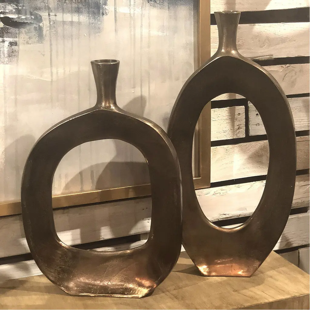 Over-sized Set Of Two, Handcrafted, Textured Cast Aluminum Vases Featuring A Bronze Finish. Sizes: Sm-13x18x2, Lg-11x22x2