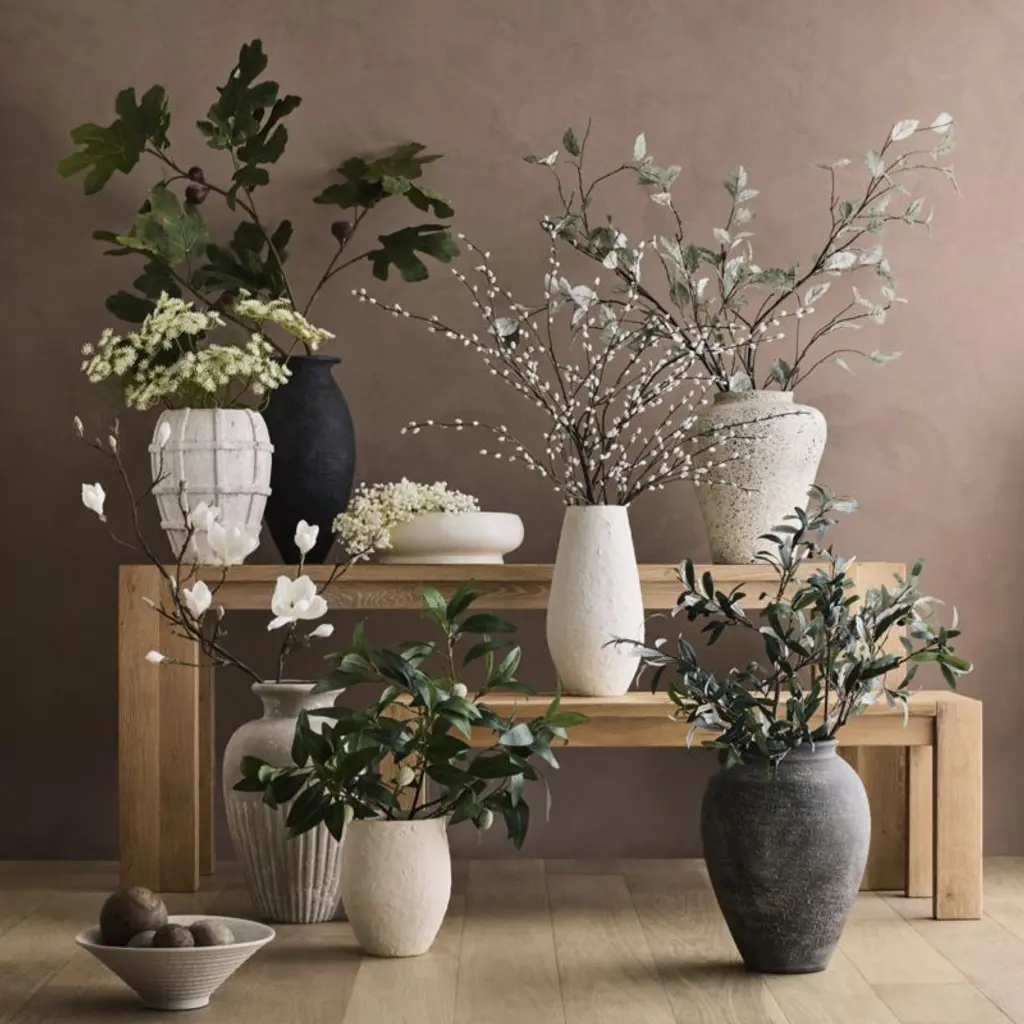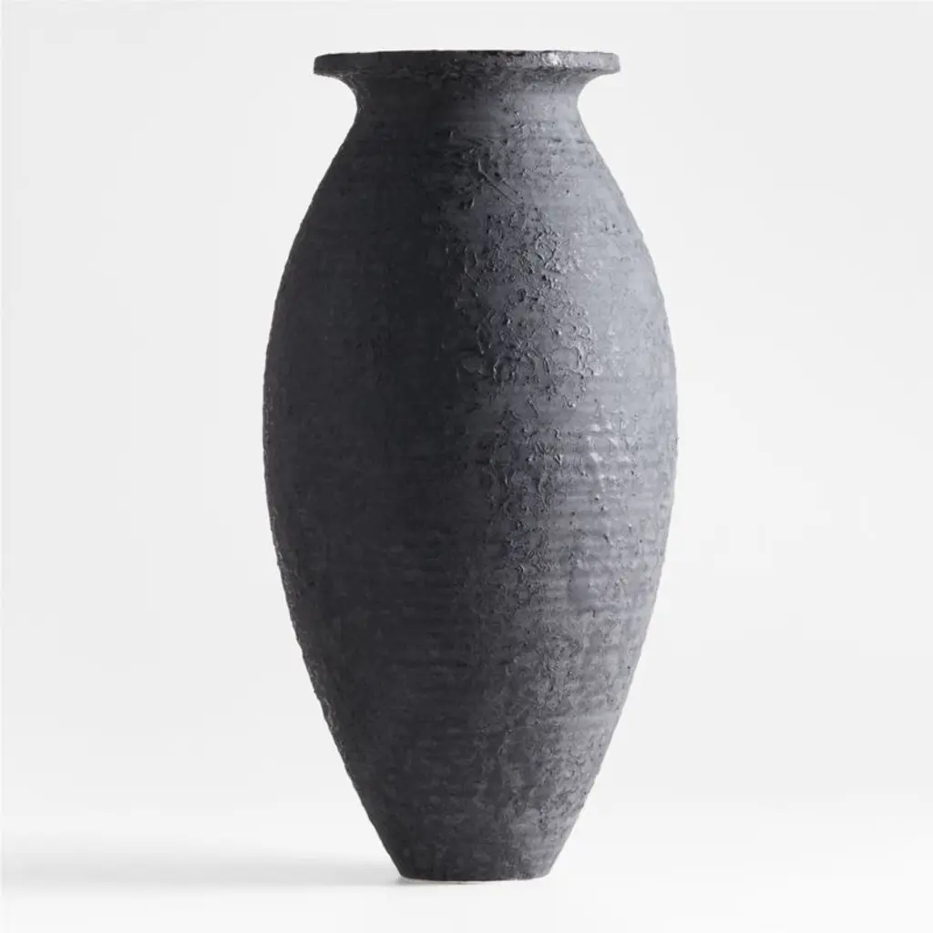 Kyoto streamlines a classic amphora silhouette, tapering gracefully to a slender base. Skilled artisans coat the ceramic vase with a reactive black glaze by hand, creating a fascinating mix of matte and glossy textures for a look both ancient and utterly modern. This tall vase holds its own on a pedestal, credenza or mantel, but we also love to fill it with faux branches.