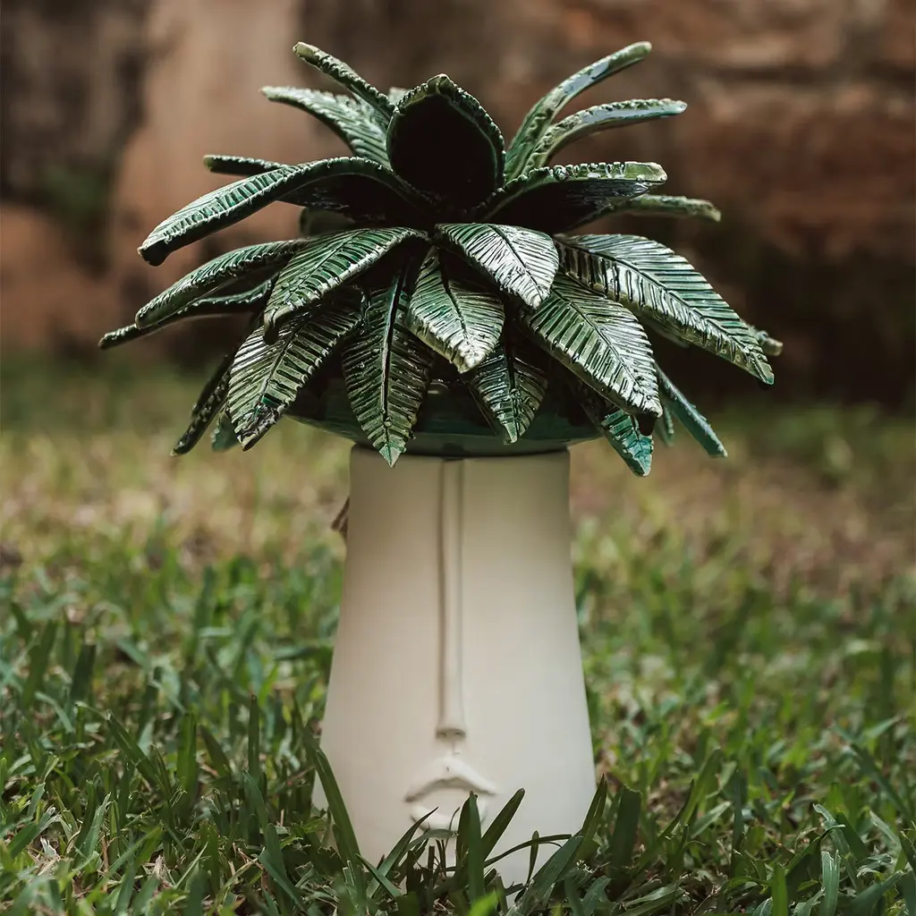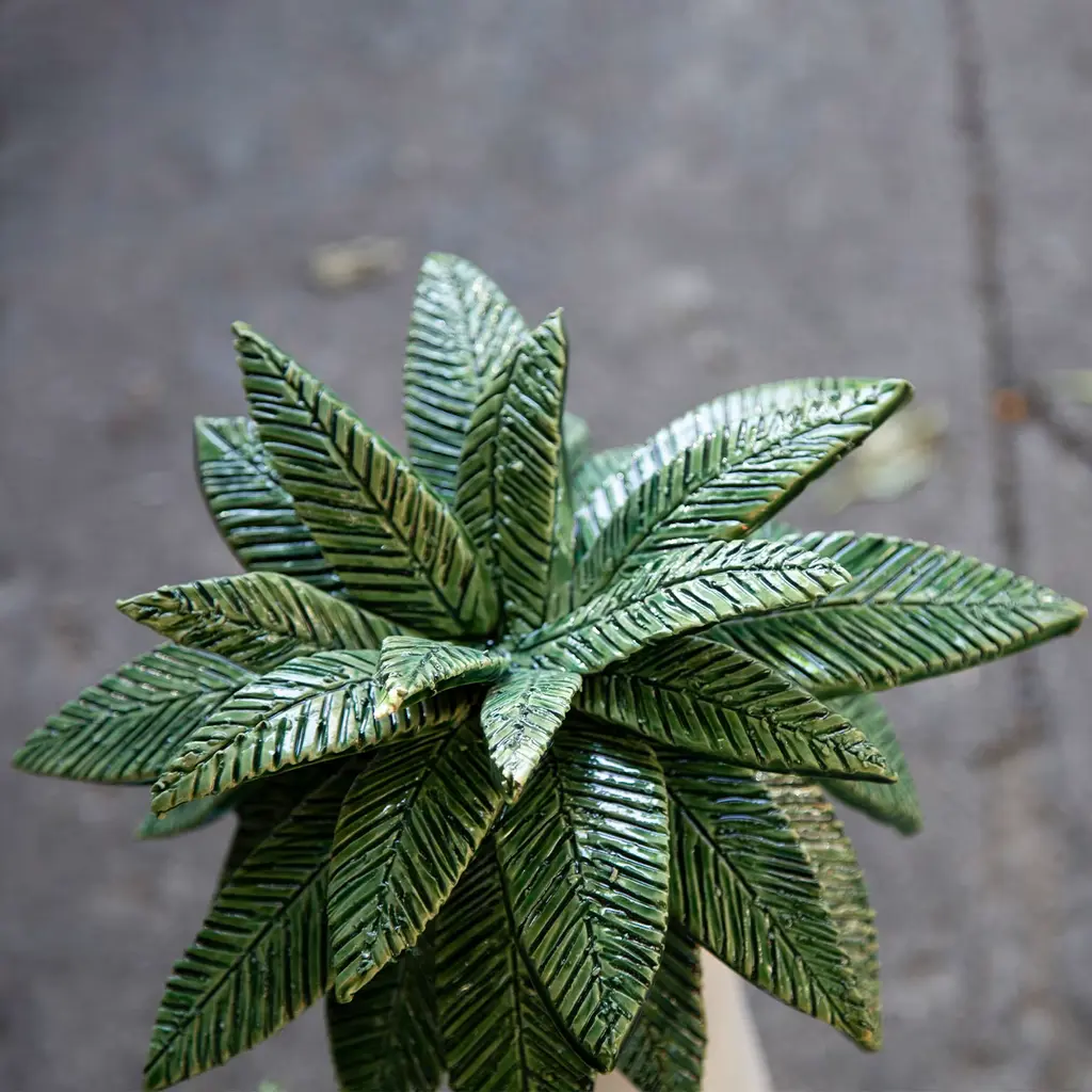 A unique two-piece box blending natural charm and modern elegance. The base features a sleek, matte white enamel finish for a minimalist touch, while the lid, crafted from palm leaves, shines with a stunning iridescent green, evoking nature’s vibrant beauty. Perfect for adding a stylish and eco-conscious accent to any space.