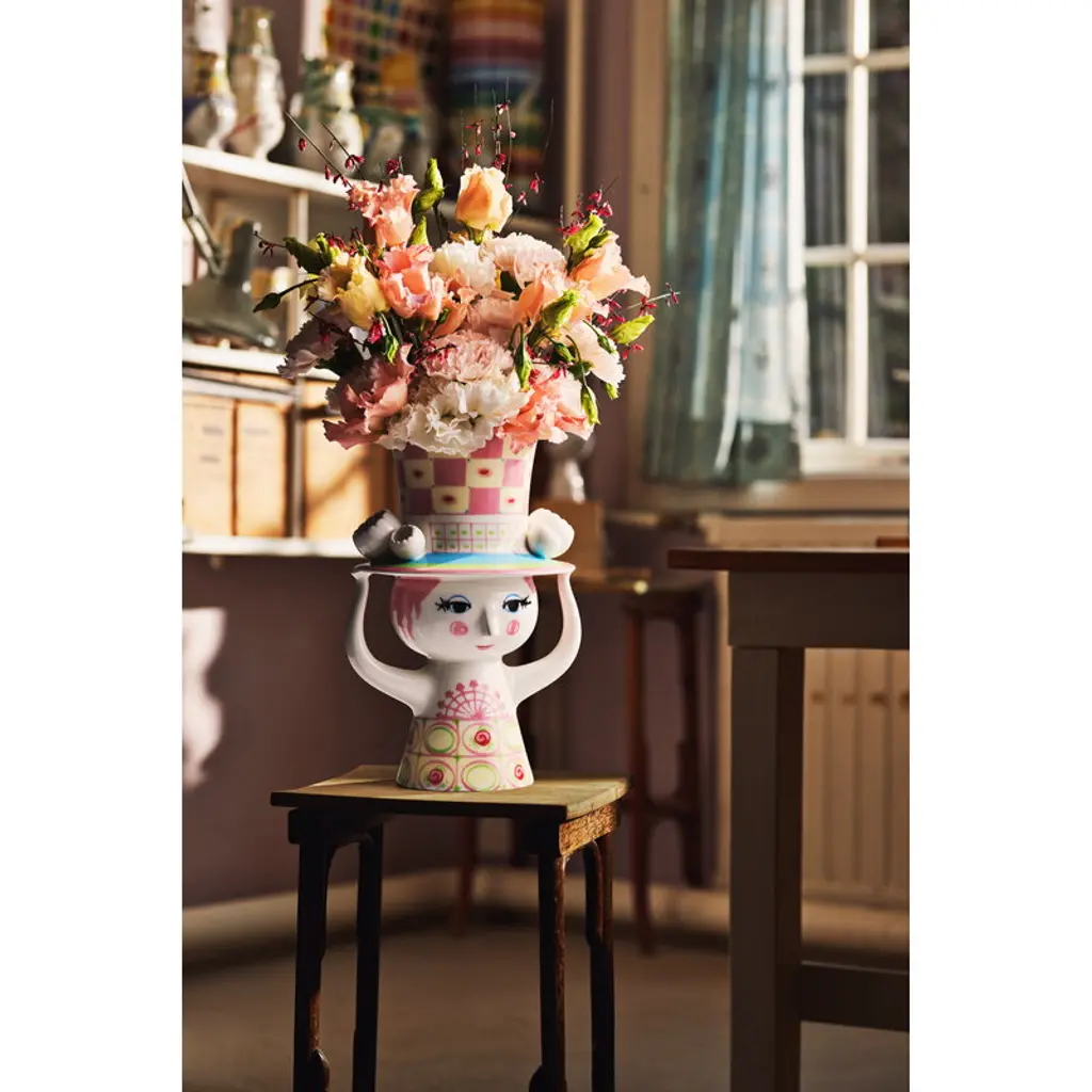 Lady With Hat Vase, 24,5 Cm, Pink - Yellow