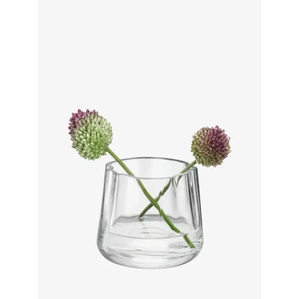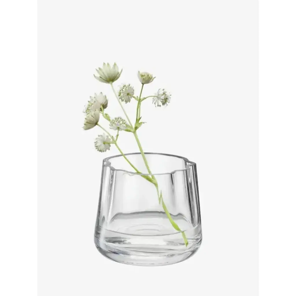 A mouth-blown tealight holder with an organic form, inspired by a lagoon. Suitable as candleholder, mini pot or vase, naturally arranging flowers in the undulating folds of the glass. Available in clear or sea green glass.