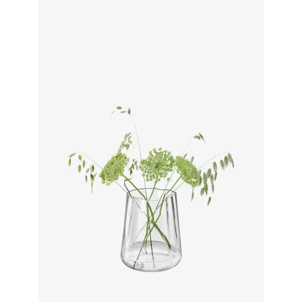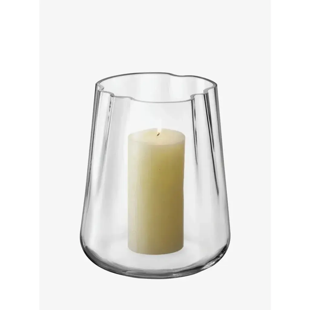 A mouth-blown vase/lantern with an organic form, inspired by a lagoon. Suitable as a lantern or vase, naturally arranging flowers in the undulating folds of the glass. Available in clear or sea green glass. Mouth-blown glass Organic shape For use as lantern or vase Available in clear or sea green