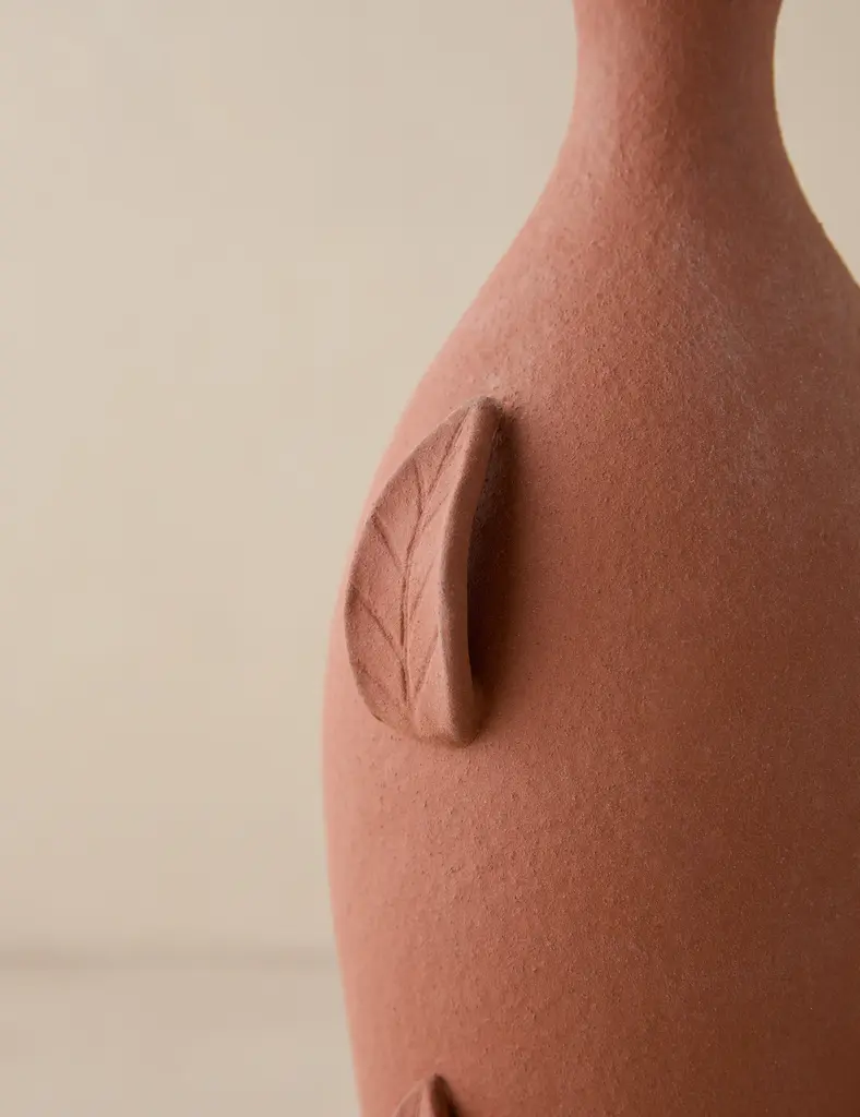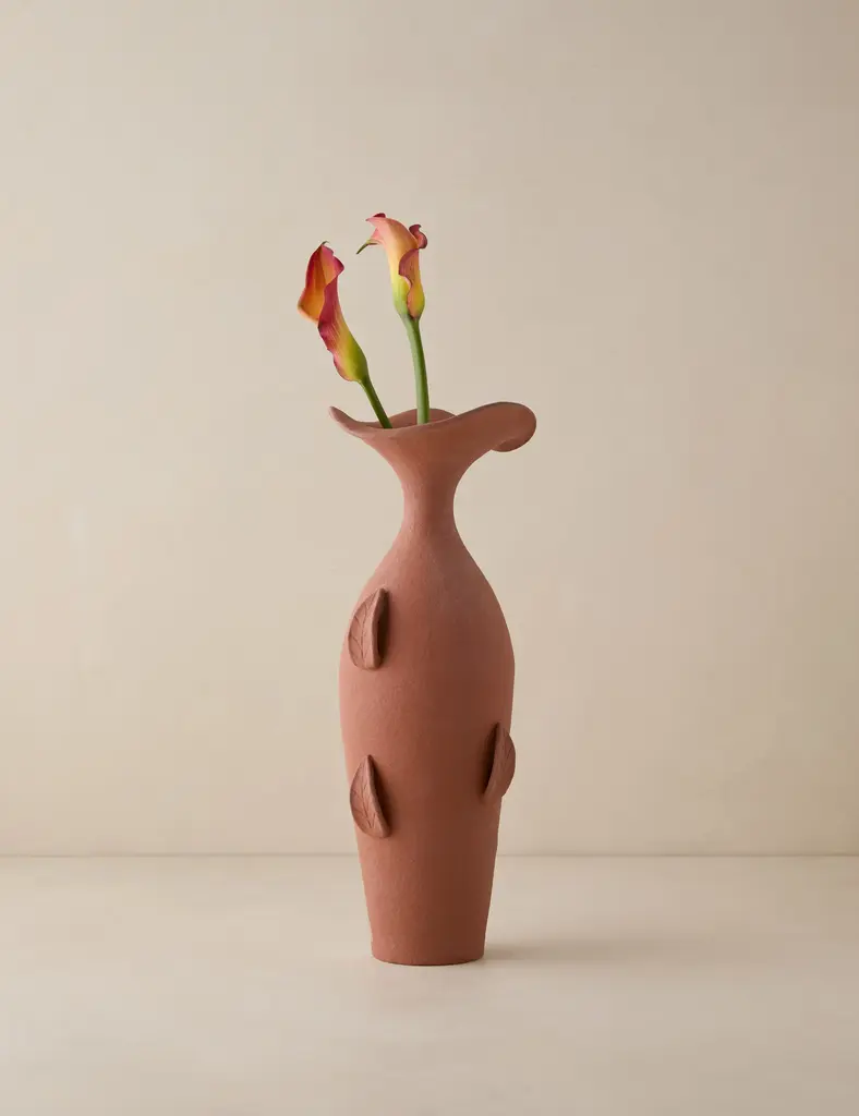 Fluid yet refined, the Lahtee vase styles a striking silhouette with botanical details in a rich terracotta hue. This piece is from our exclusive Sarah Sherman Samuel collaboration and features all the trademarks of her warm, edited style.