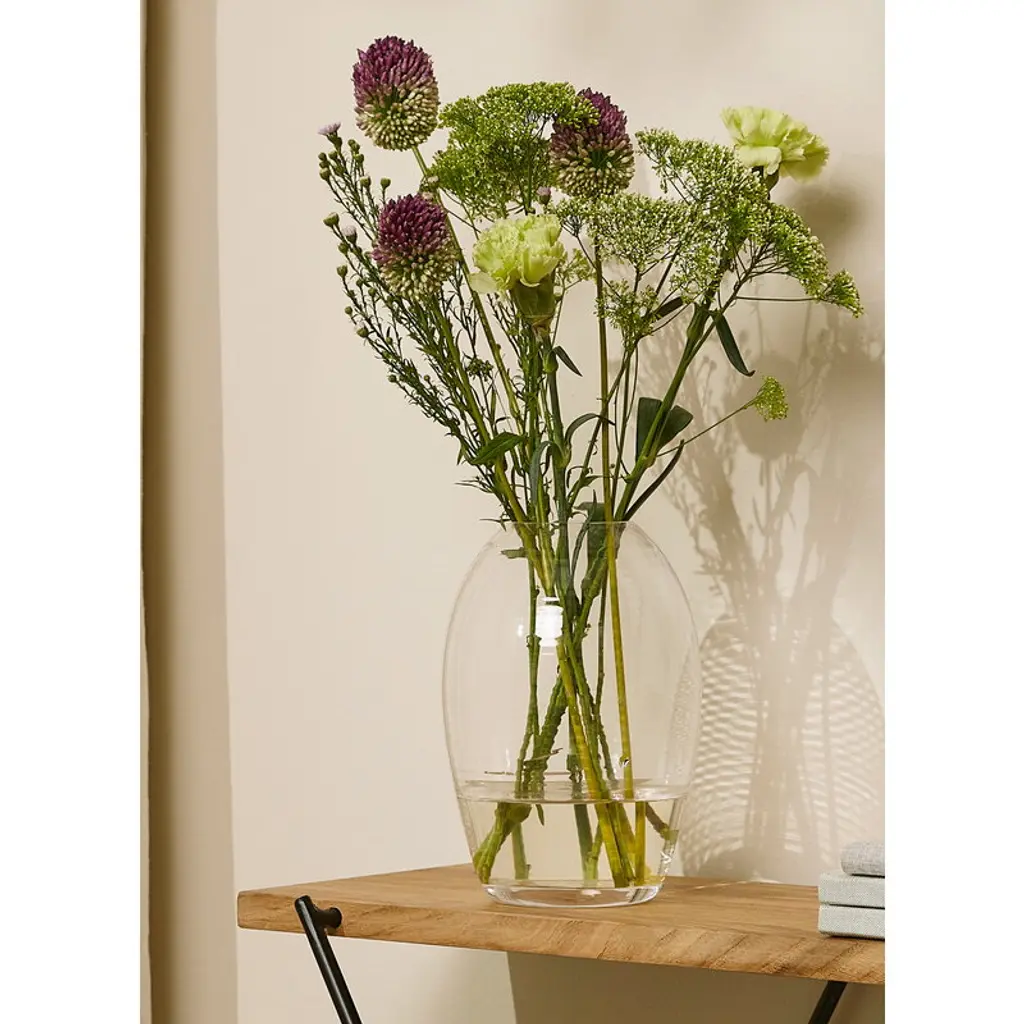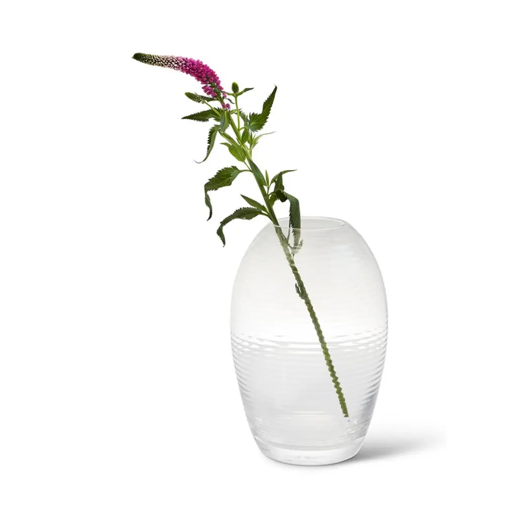 Spring Copenhagen's oval-shaped Laine vase is a simple yet beautiful home for your flowers, hiding more than meets the eye. Designed by Samuli Helavuo, the vase is adorned with a rippled design that is reminiscent of summer breezes on the water's surface. The bright Laine vase highlights the vibrant colors of flowers but will also suit arrangements of plain twigs and branches and delight the décor even when empty, too.