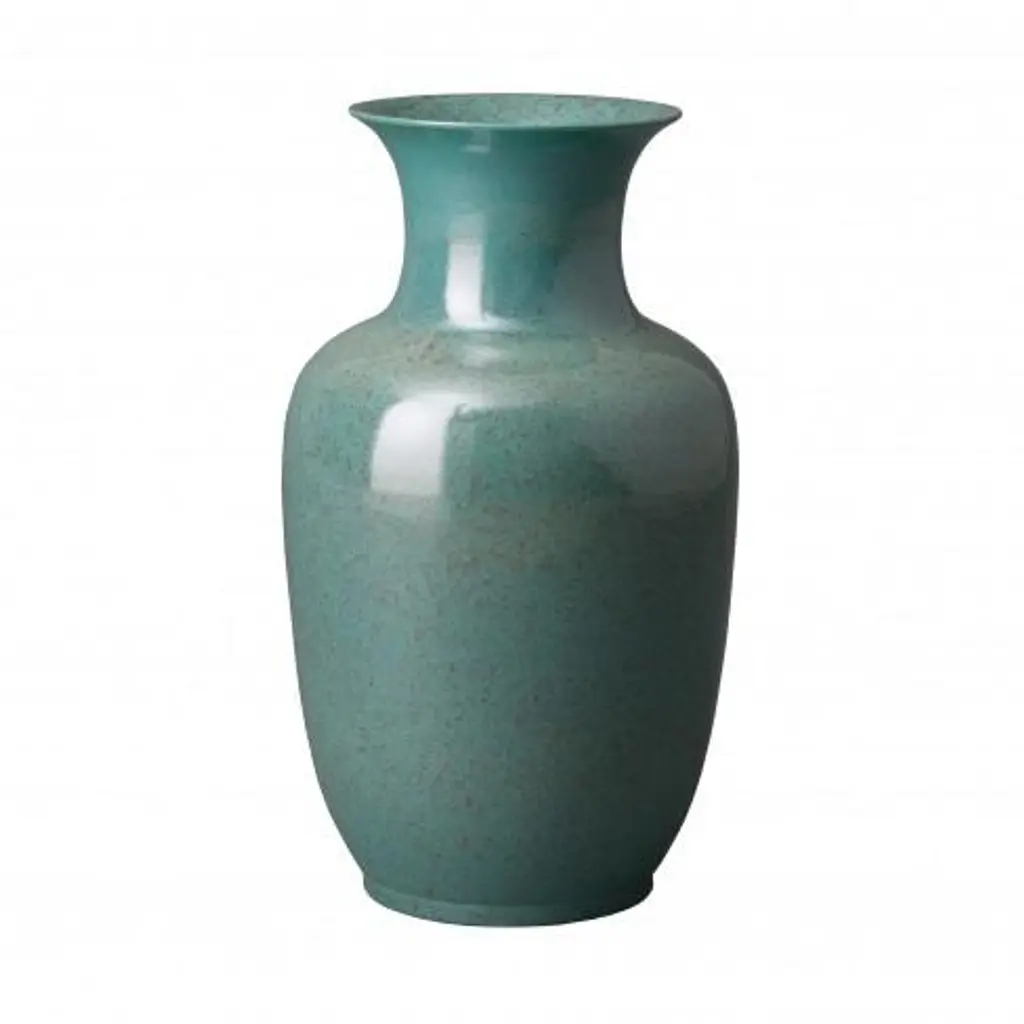Display a bouquet in this vase to add to its beauty. Exuding elegance this vase will elevate your space. Available Colors: Crystal Oyster Glaze and Lagoon Speckle Glaze Size: 9"D x 1'5"H Finish: Glossy Glaze *Images shown are for Illustration purpose only, actual product's color/finish/option may vary.