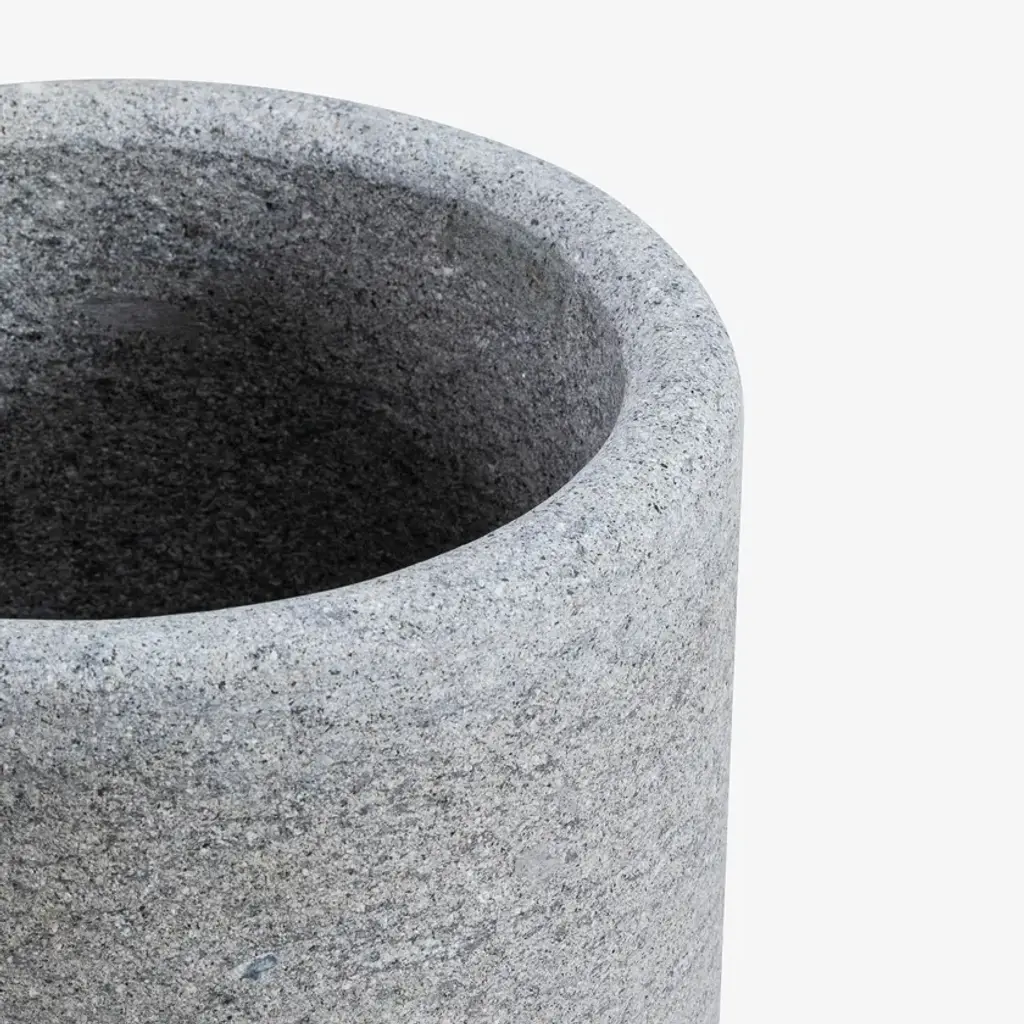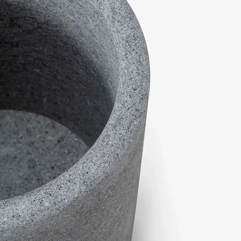 Lapis is a simply perfect cylindrical vase, made unique by the veins of travertine or the grain of peperino, making it perfect to enhance the plants you cherish the most. The greenery of the leaves and the shades of the flowers stand out in harmony with the stone, creating a delicate balance and a continuous dialogue with nature.Vase: Large structure measuring 45 X 39 X 3,5 cm (Height x Diameter x thickness).In particular, the width of the vase is static and does not extend. It measures 39 cm at the base and 39 cm at the top.Stone: Peperino, polished natural stone.Cutting and welding with state-of-the-art numerically controlled work tools.